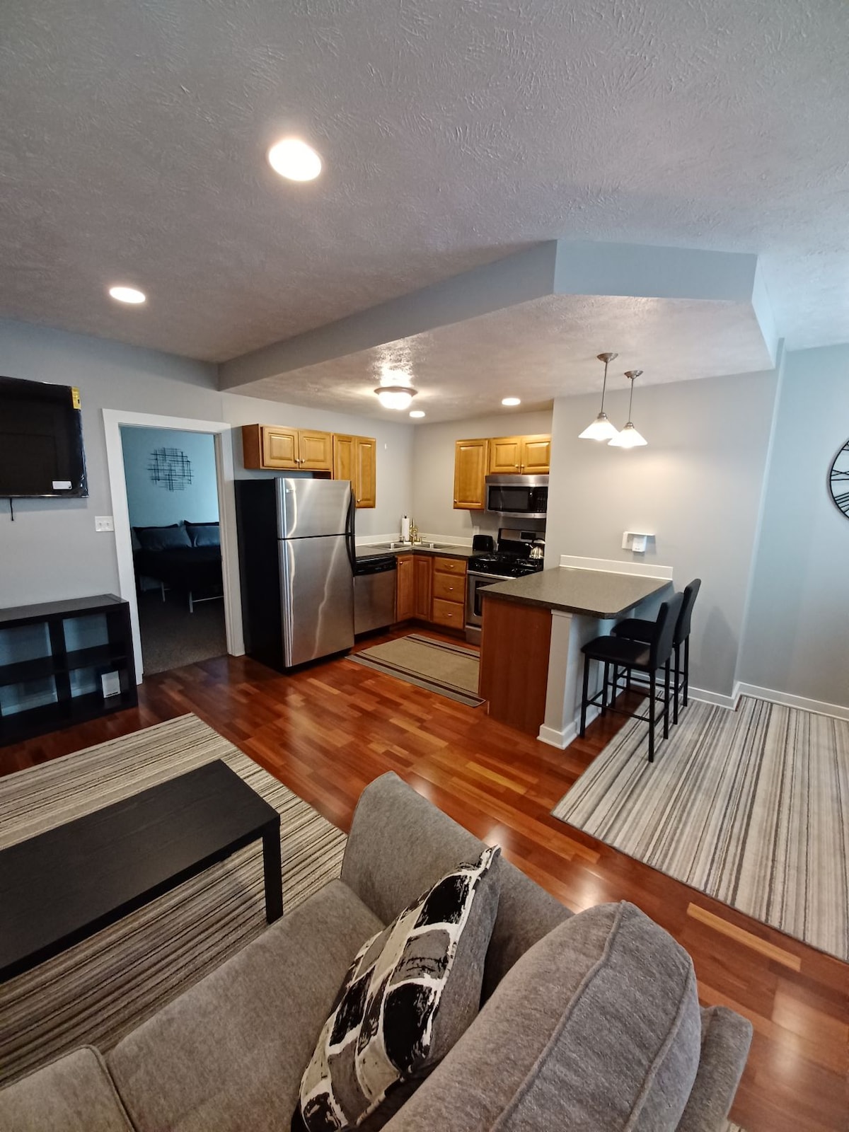 Apartman ima sopstveni ulaz sa zadnje strane kuće i parking na prilazu. Nalazite se u sopstvenom PRIVATNOM prostoru koji se ni na koji način ne spaja sa mojim životnim prostorom; verovatno se nikada nećemo sresti. Prostor je veoma ažuriran i čist. Sadržaji uključuju sopstveno kupatilo sa luksuznom tuš-kabinom, mini kuhinju u apartmanu sa šporetom i frižiderom, mali trpezarijski sto, kauč i udoban bračni krevet. Udaljen je oko 15 minuta od svih glavnih univerziteta, centra grada i svih sportskih arena.