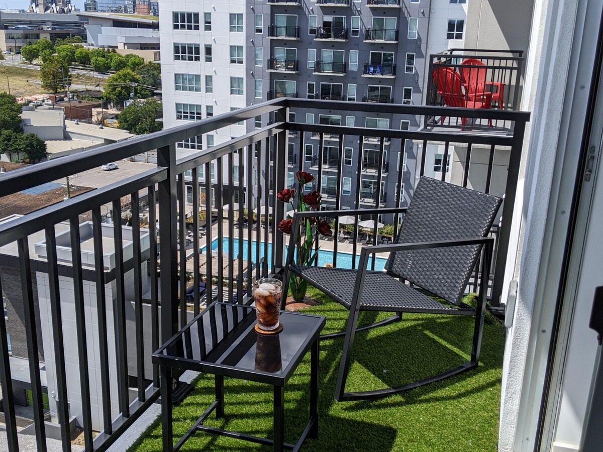 Otkrijte moderan odmor u Nešvilu savršen za porodice, parove i prijatelje, grupe starije od30 godina. Uživajte u pogledu na horizont iz bazena sa slanom vodom, opustite se pored udobnog ognjišta ili ostanite aktivni u modernom fitnes centru. Samo 5 minuta do Brodveja i kratka šetnja do Kuće slavnih kantri muzike (7 minuta) i Bridžston Arene (8 minuta). Ovaj smještaj nudi savršen spoj udobnosti, trenda i atmosfere Muzičkog grada. Bićete blizu zbivanja, ali sa mirnom, modernom atmosferom da se opustite nakon uzbuđenja.