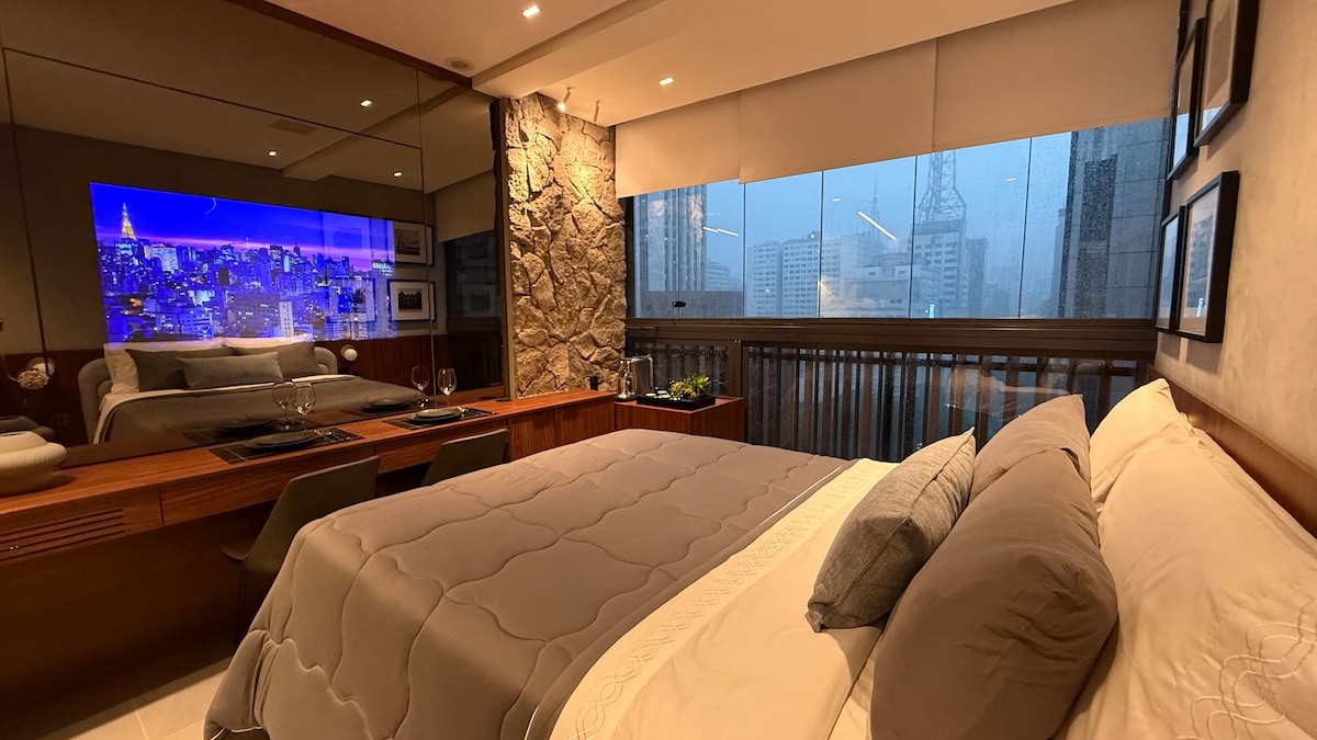 Dobro došli u svoje utočište u srcu raja. Ova garsonjera je pažljivo dizajnirana da pruži udoban, funkcionalan i nezaboravan boravak. Svaki detalj dekoracije, od posteljine do osvetljenja, izabran je da stvori gostoljubivo iskustvo, sa osećajem da ste kod kuće, ali sa privilegovanom pogledom na Sao Paulo.