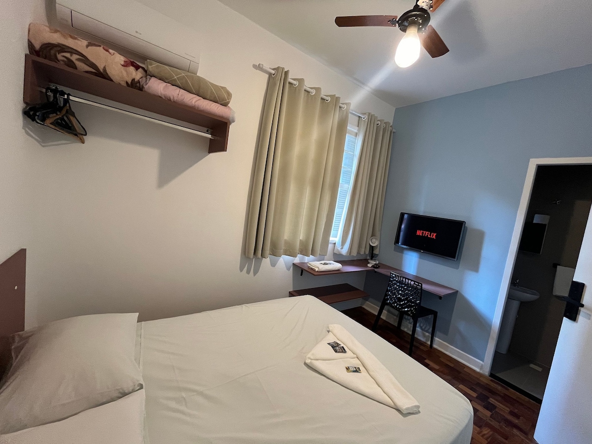 Mi brinemo o svemu pa možete da uživate u svakoj sekundi svog boravka bezbrižno! Odlična lokacija, 500 metara od metroa Anhangabaú i metroa República, u blizini najboljih znamenitosti, barova, restorana i klubova. Privatna soba sa bračnim krevetom, TV-om i kupatilom. Neke zajedničke prostorije, kuhinja sa priborom za kuvanje hrane, zajednički veliki frižider. Besplatan Wi-Fi Klima-uređaj Glačalo Fen za kosu