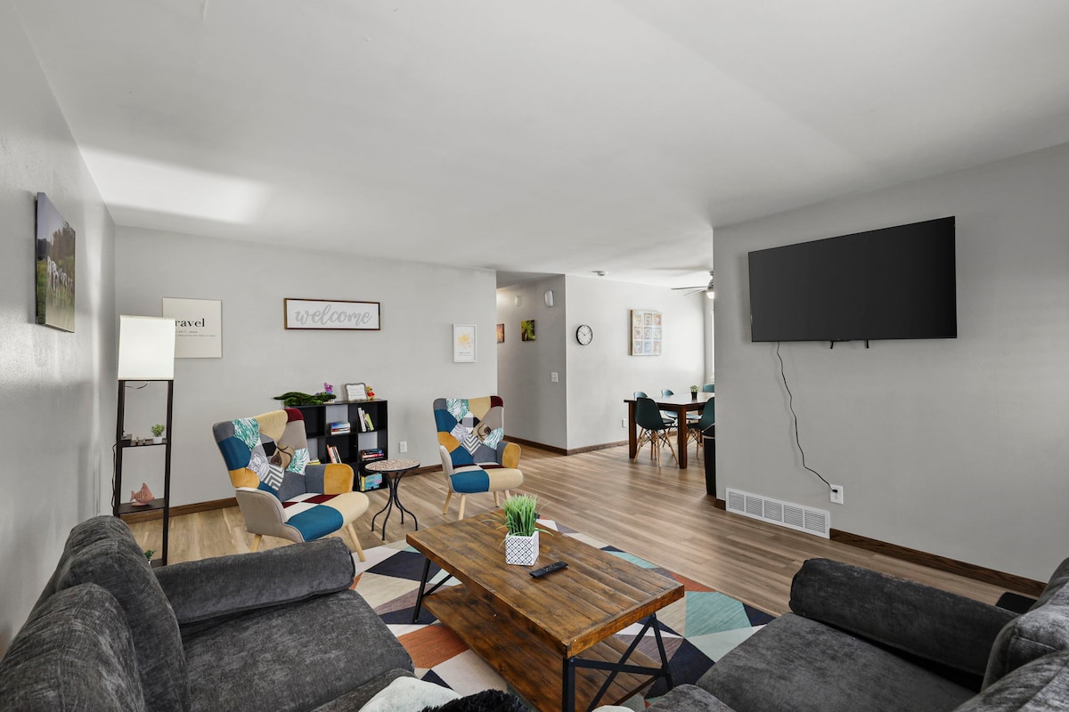 Imaćete ceo udoban dom sa 2 spavaće sobe za kućne ljubimce za do 4 gosta sa 2 bračna kreveta. Potpuno opremljena kuhinja i vanjski roštilj omogućavaju vam da sami pripremite obroke. Koristite dom i udobnu terasu kao bazu za jednostavno opuštanje u mirnom delu grada ili kratku šetnju do centra grada ili kratku vožnju da biste uživali u ljepoti državnog parka Gov Dodge, kuće na području Rock & Driftless. Postoji radni sto sa brzim Wi-Fi mrežom za vaše radne potrebe. Popusti na zimu i dugoročne boravke su sada dostupni.