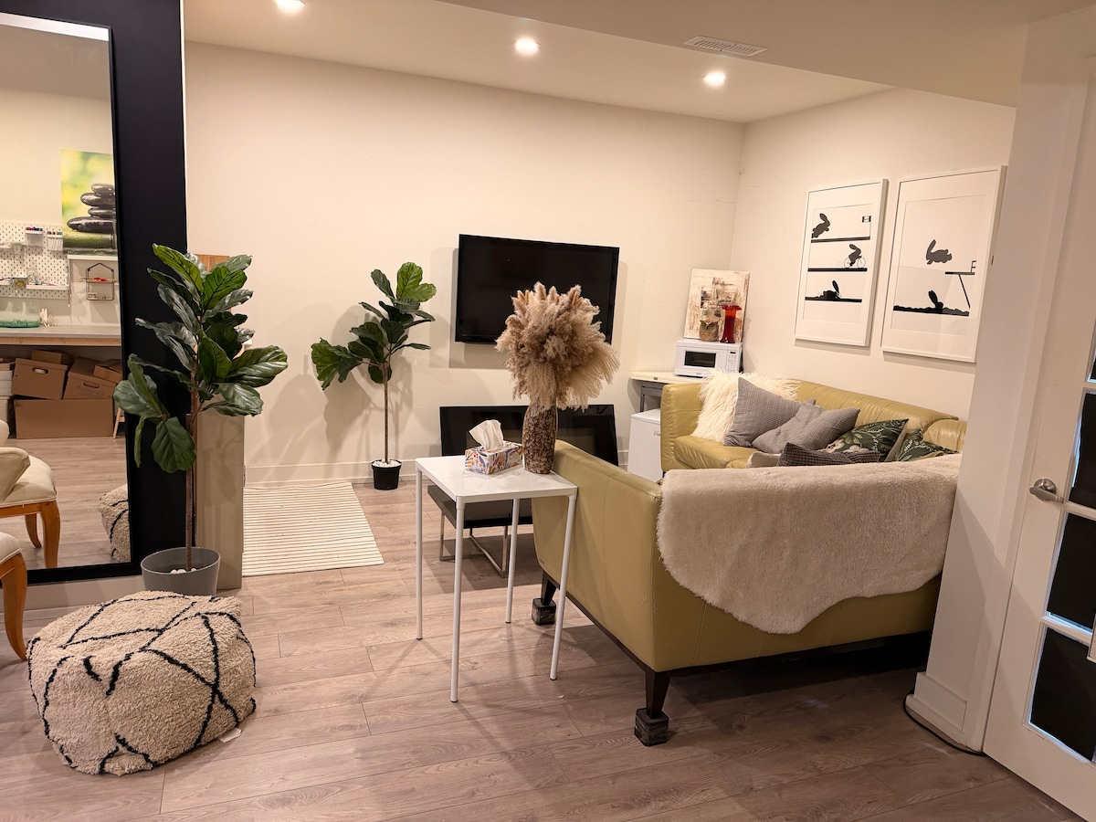 Welcome to your home away from home. This spacious private unit has been beautifully renovated. The utmost care has been taken to create a cozy, bright and inviting space for you to enjoy while you rest and relax. This space boasts 2 full bedrooms, a bonus den with a desk, printer and a small workout area and 2 full bathrooms. The primary bedroom has a walk-in closet and primary bath. Both bedrooms have queen beds with fresh new linens. Washer and dryer in the unit. Well equipped kitchenette