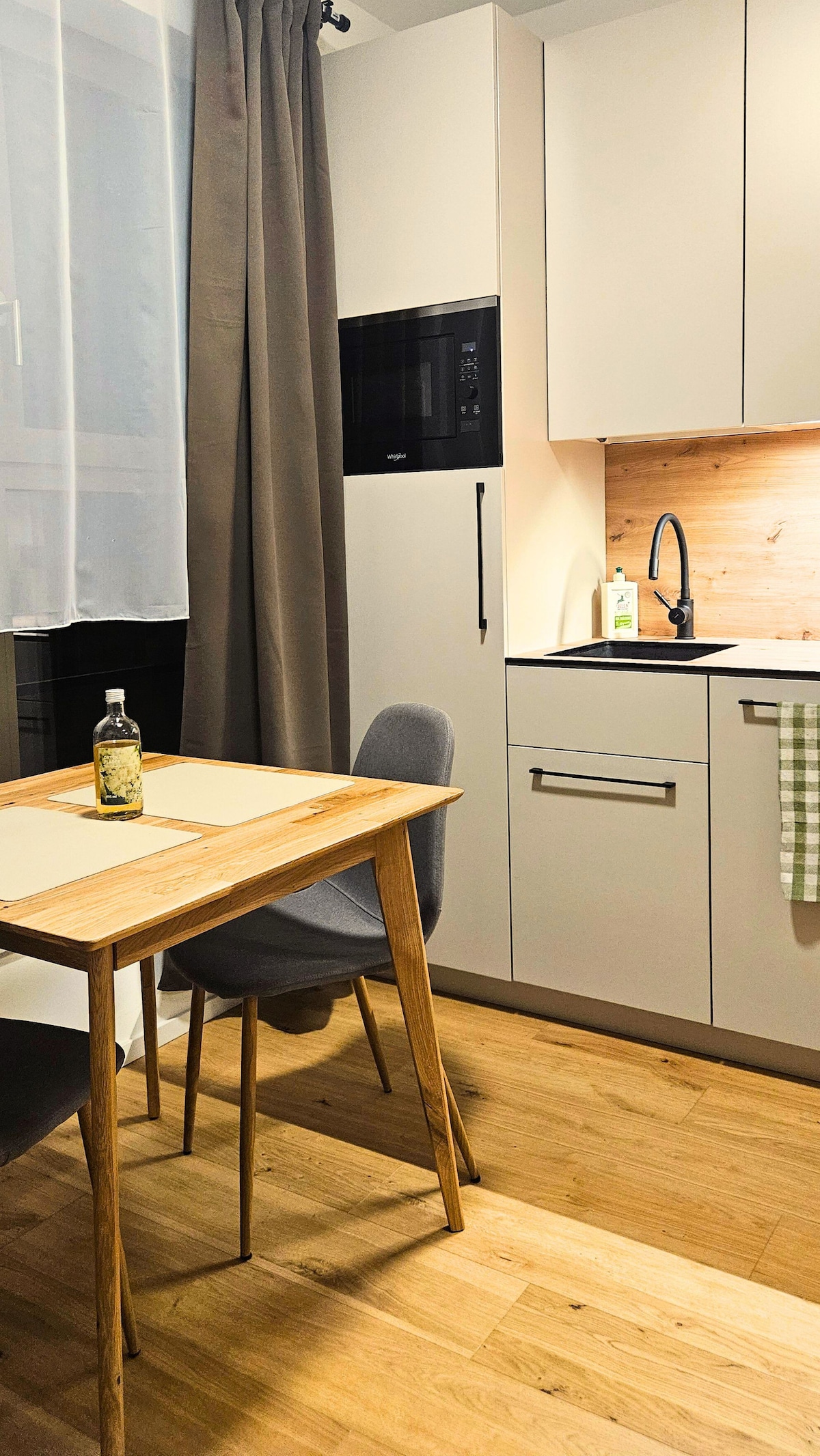 Ovaj jedinstveni smještaj ima sljedeće pogodnosti: -privatni besplatan parking -pristup kôdu non-stop -potpuno opremljen stan 2kk 96m2 -udoban smještaj za 5 osoba - Velika privatna terasa sa saunom i solarnim tušem -2x Smart TV sa O2 TV-om, NETFLIX-OM i drugim uslugama -LIDL, teretana, restoran u zgradi - mogućnost naručivanja hrane do stana putem: Bolt Food, Wolt, Foodora