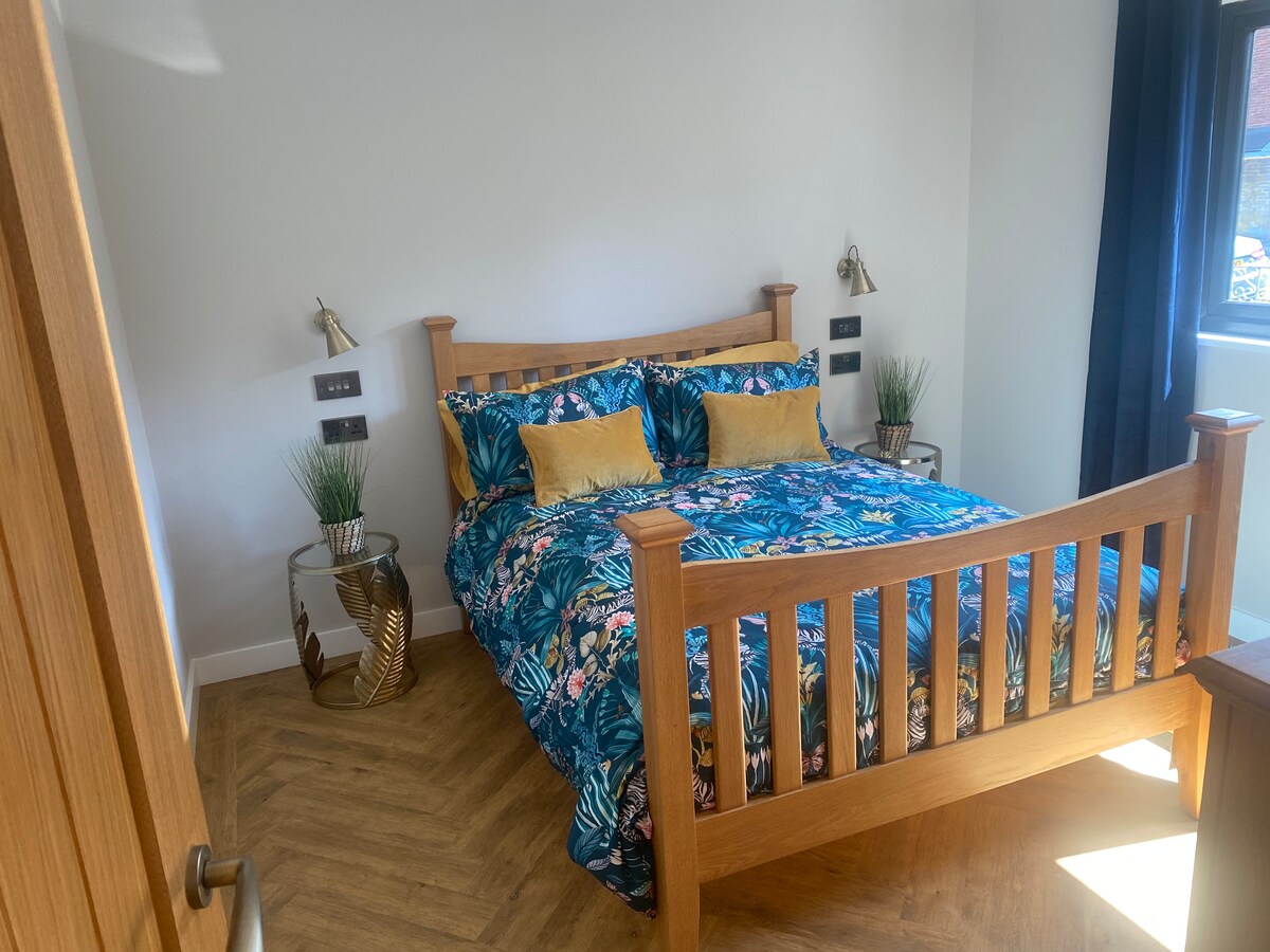 Cherry Tree House is a private apartment within our house with own entrance. We live in the other half of the house with no access to your apartment. King size Hypnos bed, fully fitted kitchen, range cooker, microwave, washing machine, fridge/freezer and dishwasher. Own bathroom with a huge walk in shower. A 40" TV with Now TV and Netflix, so you can relax and catch up with a box set. Tea/coffee facilities are provided. You also have shared access to our peaceful garden. No children or pets.
