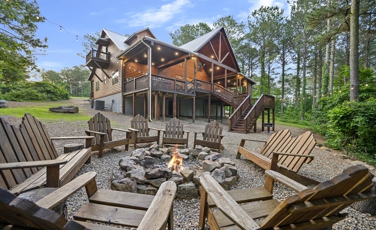 Escape to Nectar’s Ridge, a rustic-luxury retreat inspired by decades of rock-and-roll energy and tucked in the Broken Bow pines. This spacious cabin sleeps up to 18 with three king suites and a custom-built bunkroom with six full beds. Enjoy a private heated pool (additional heating fee may apply), full arcade room, and hot tub under the stars. A private playground, cozy fire pit, guitars, Roku TVs, and high-speed WiFi complete the experience. It’s time to dive into the moment.