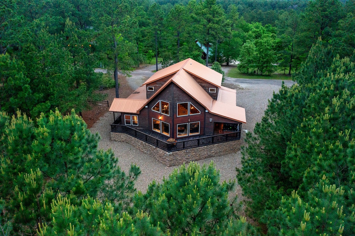Vino od jagoda u Pajnsu - luksuzna brvnara sa 4 spavaće sobe sa savremenim štihom. Ova prilagođena izrada ima zanatske detalje u mirnoj atmosferi. Smješten među borovima visokim 30 metara, ali manje od 3 km udaljen od vinarije, pivara i restorana. To je savršeno mjesto za opuštanje i opuštanje daleko od vreve i vreve svakodnevnog gradskog života. Želimo vam dobrodošlicu u naš prelepi dom i pozivamo vas da stvorite dragocene uspomene u prelepom Broken Bow koji traje ceo život.