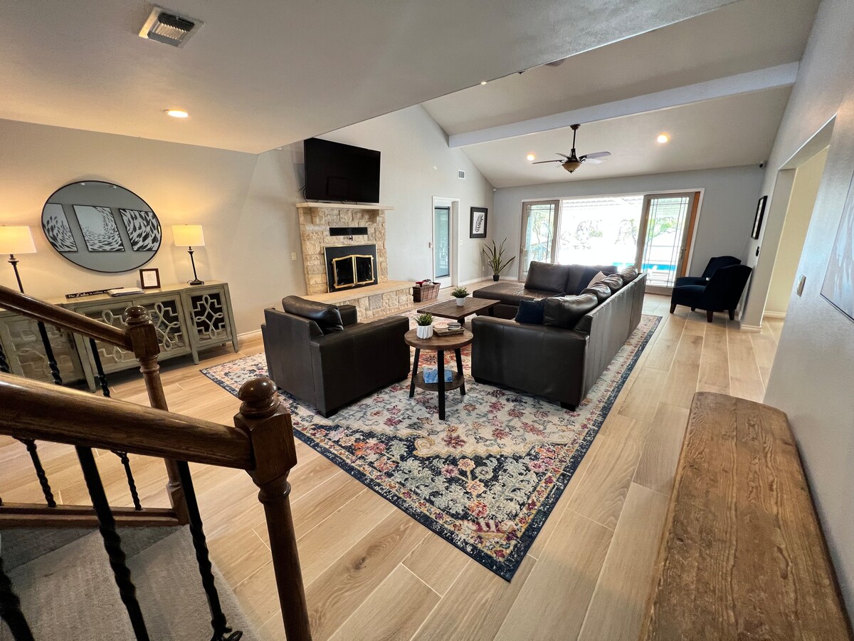 MANJE OD MILJE OD PRELEPOG JEZERA BRAUNVUD!! Miran i opuštajući dom na predivnoj lokaciji, okružen mirnim susedstvom. Prilaz ima izuzetno široku ploču za više parkinga ispred. Tlocrt je otvoren koncept sa mnogo prostora. Ažurirani uređaji. Veliko zadnje dvorište. Ova kuća je savršena za zabavu tokom cele godine na vodi i samo 15 minuta do centra Braunvuda. Pristup jezeru, golf, večera i planinarenje u krugu od 10 milja. * Nivo vode je nizak, proverite da li postoje otvorene rampe za brodove *