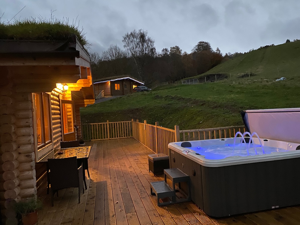 The Farmers Den is one of our recently developed Luxury River Garry lodges set amongst the most beautiful countryside in Highland Perthshire. Each of our 2 bedroom lodges are cosy and well equipped to a high standard . Each lodge has its own private hot tub with its own balcony & barbecue area over looking the most stunning countryside. There are plenty of beautiful walks for those looking to get out and about. Private parking space with plenty room for 2 or 3 cars. Only 10 mins from Pitlochry.