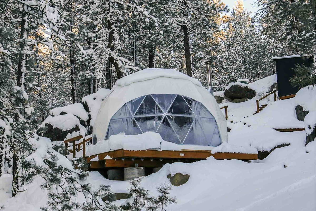 Kaskadna kupola: uzdignuta geodome kampovanje sa saunom