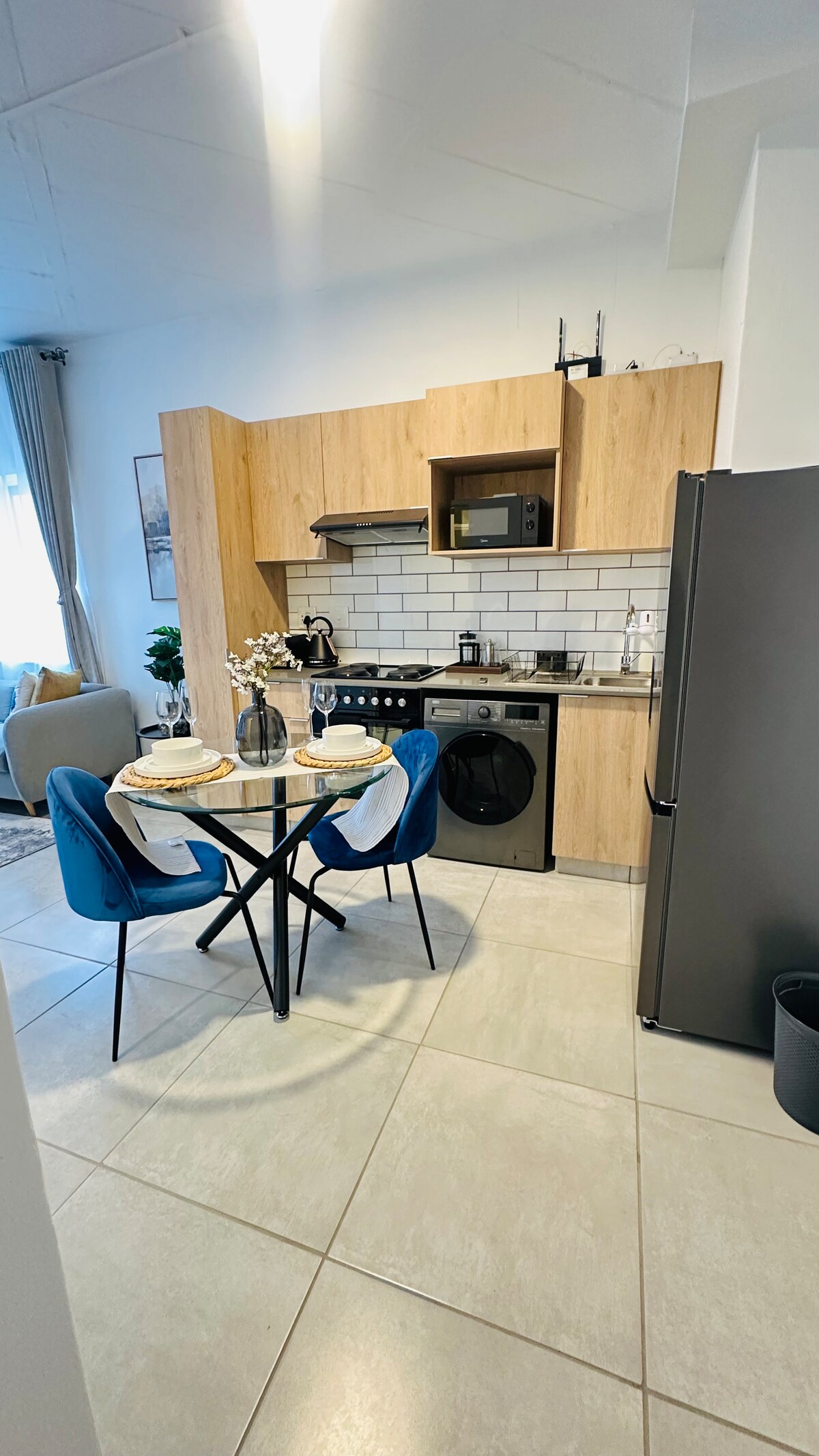 Dobro došli u Sandton Solace - vaš spokojni odmor u srcu najživopisnije četvrti Johanesburga. Ovaj moderni jednosobni stan nudi savršen spoj luksuza i udobnosti, idealan za poslovne putnike i one koji putuju u slobodno vrijeme. Smješten u sigurnom, mirnom kompleksu samo nekoliko minuta od Sandton Sitija. Prostor ima potpuno opremljenu kuhinju, brzi Wi-Fi, pametni TV sa Netflix-om. Bez obzira na to da li ste ovdje da se opustite, radite na daljinu ili istražite grad, ova jedinica je vaš elegantan dom daleko od doma.