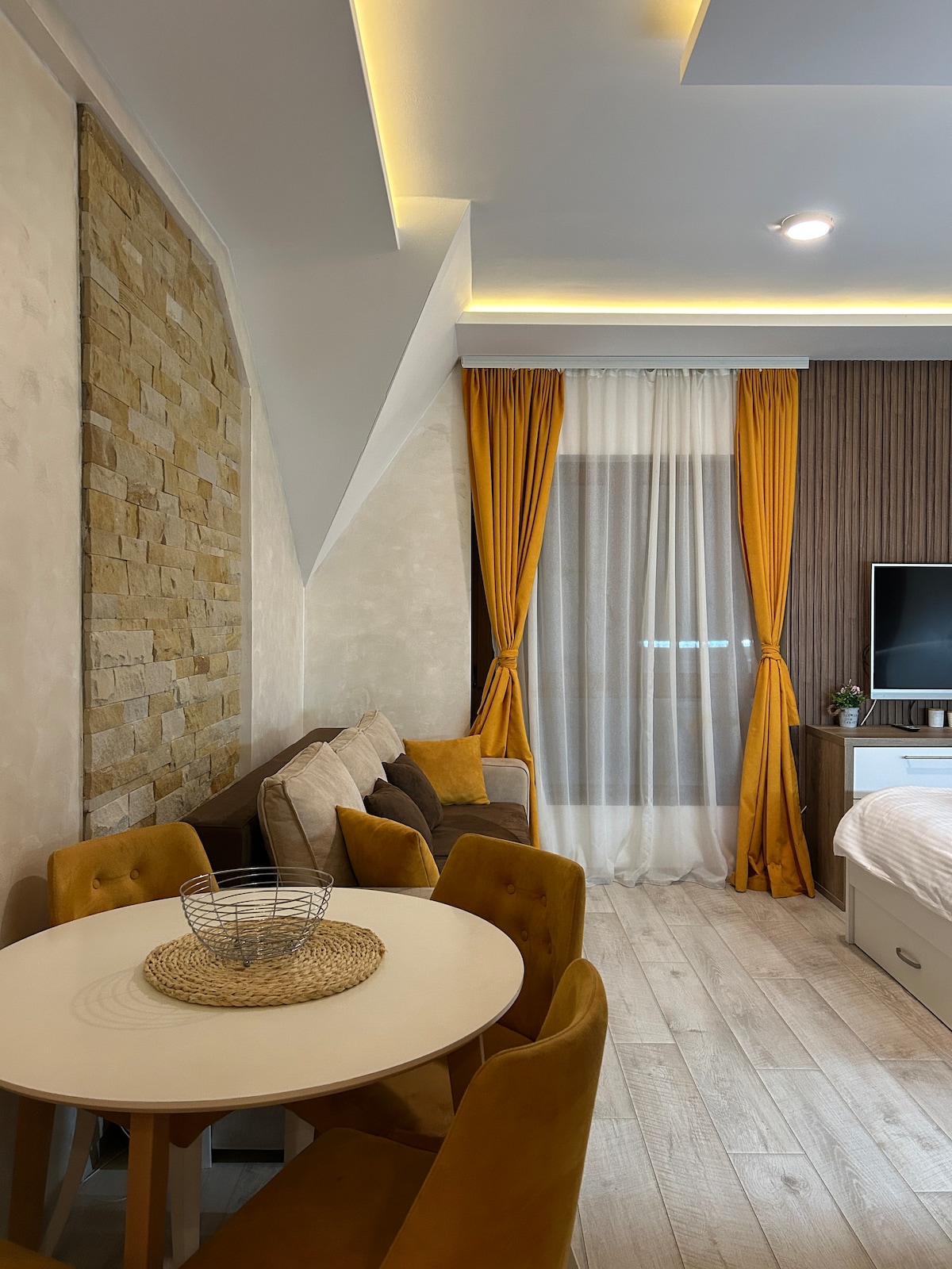 Doživite mir i udobnost u ovom moderno uređenom jednosobnom apartmanu, smeštenom u srcu Kopaonika. Savršen je za parove, male porodice ili za rad na daljinu, jer spaja moderan dizajn sa spokojem planinskog života. Uživajte u zadivljujućem pogledu, svežem planinskom vazduhu i lakom pristupu restoranima, wellness & spa centru i avanturama na otvorenom – sve to na samo nekoliko koraka od vas.