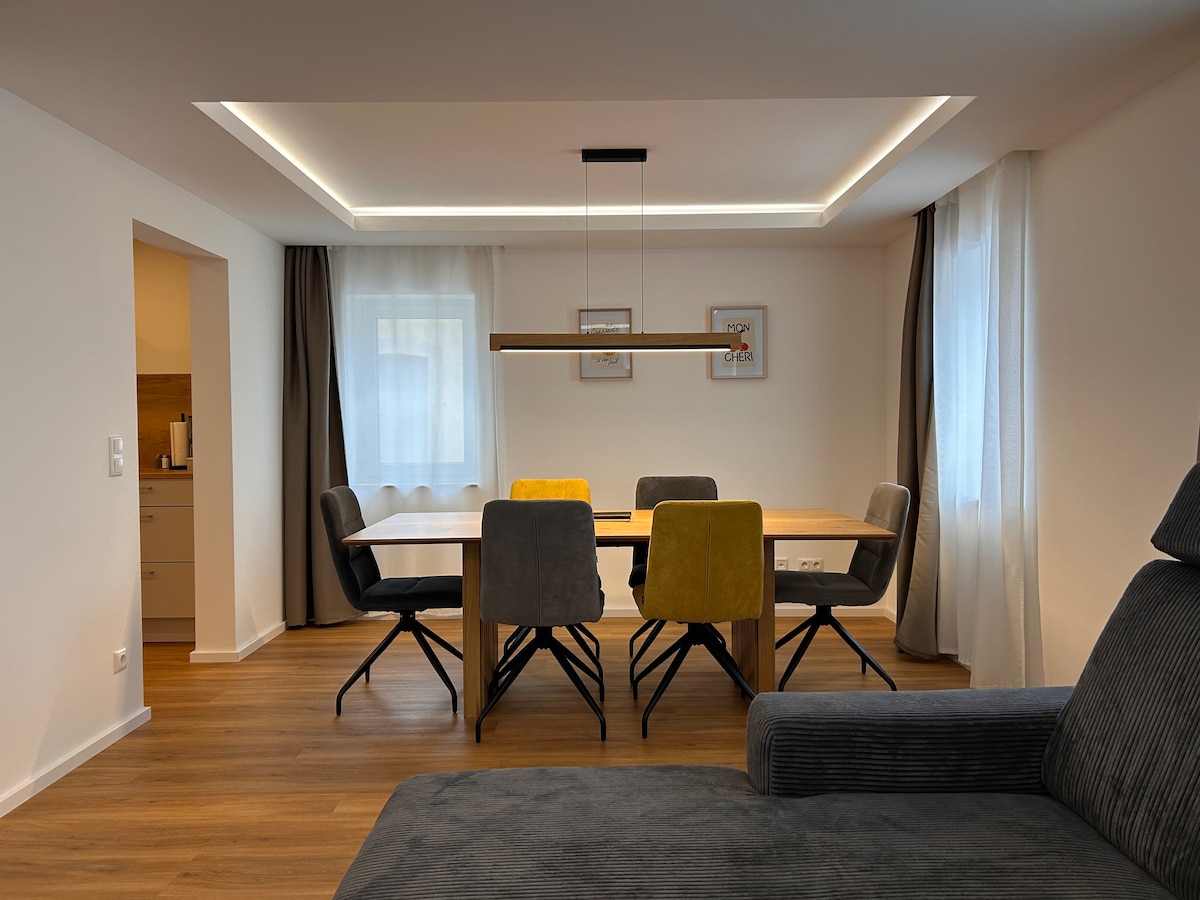Srdačno vam želimo dobrodošlicu u vinsko selo Theilheim. Ne možete se približiti prirodi. Do obližnjeg baroknog grada Vircburga možete doći živopisnom biciklističkom stazom (oko 10 km). Jednosoban stan od oko 32 m2 nedavno je renoviran 2024. godine (maksimalno za 2 osobe). Opsežna oprema uključuje rernu, mašinu za pranje sudova, QLED TV od 43 inča, digitalni radio, fen za kosu i još mnogo toga. Čaršavi i peškiri će biti dostupni tokom vašeg boravka. Usluga hljeba nije obavezna.