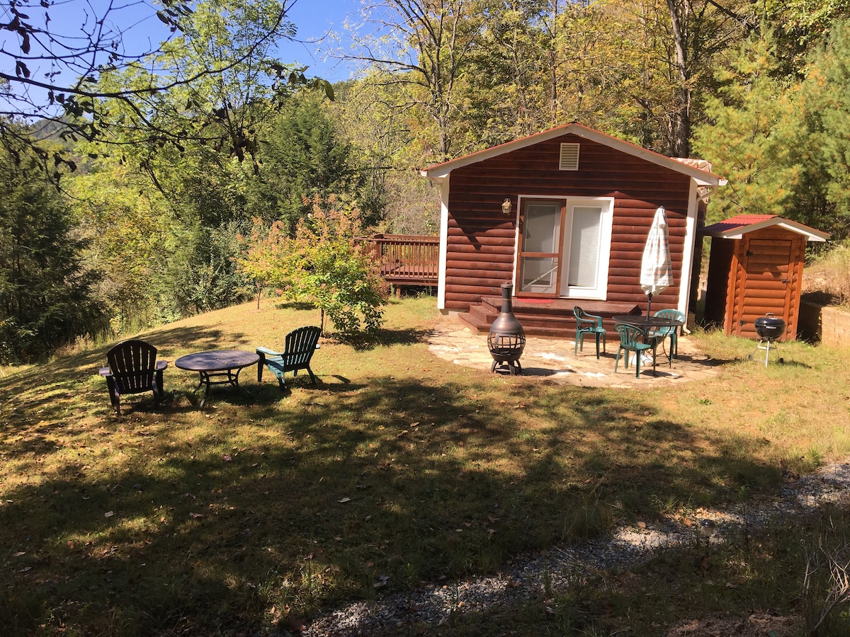 Our one-room cottage with river access sits a few hundred feet above the Greenbrier River, with lots of privacy. Queen bed, pullout couch with double bed, table and chairs, AC. Location is perfect for float trips, biking the Greenbrier River Trail, and hiking --10 minutes from Watoga State Park trails and fishing; 15 minutes from Cranberry Glades; an hour from Lewisburg, WV -- voted coolest town in American a few years ago. Our driveway fronts the river but not the cottage itself.
