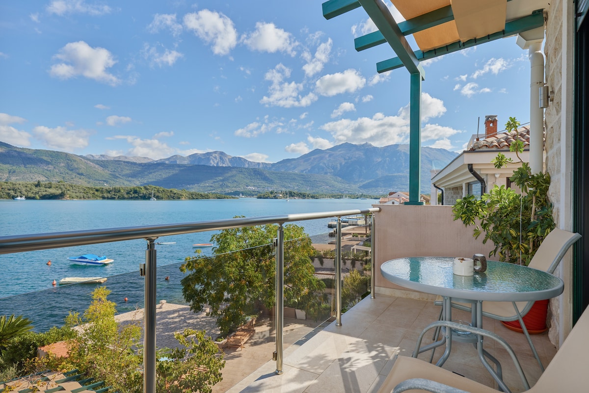 Sunčani i panoramski penthaus pružaju najspektakularniji pogled na zaliv Boka. Možete uživati u zadivljujućem plavetnilu i zelenilu mora i planina iz svih soba - uključujući kupatilo! Ako želite da se opustite pored zajedničkog bazena ili uživate u aperitivu na ogromnoj privatnoj terasi ili samo pročitate odličnu knjigu pored prozora, a priroda vas i dalje očarava - ovo je pravo mjesto za vas!