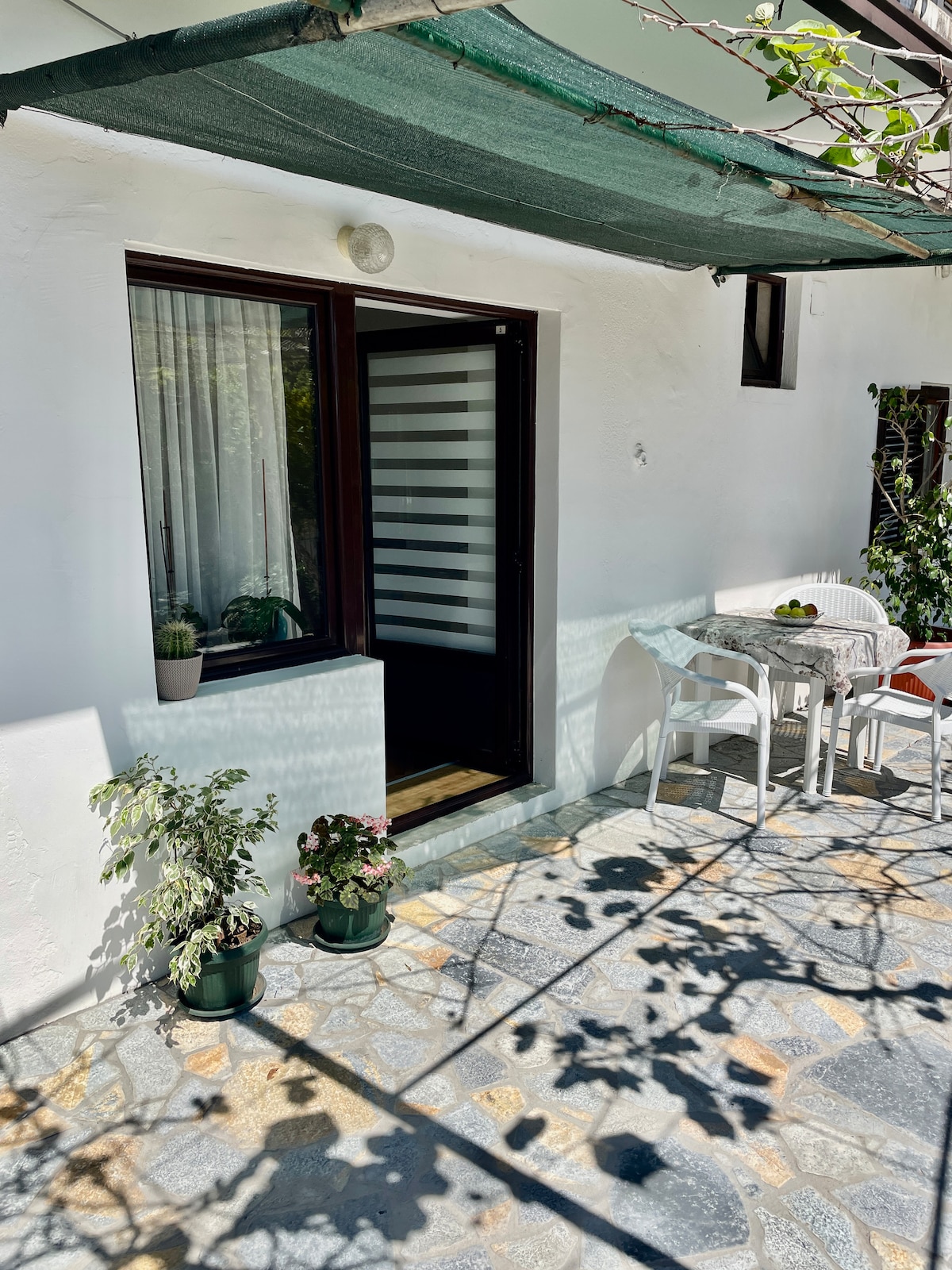 Opustite se u ovom udobnom i prostranom studiju u porodičnoj kući sa ogromnom zelenom baštom i prostranim terasama. 10 min hoda od čuvene Bečićke plaže. Lepo mesto za odmor nakon vrelog letnjeg dana i miran doručak na terasi. Studio je opremljen malom kuhinjom i svim sadržajima potrebnim za udoban letnji odmor. Deca i kućni ljubimci, sa puno prostora na otvorenom i prirodnom hladovinom, što je prilično retko u Budvi.
