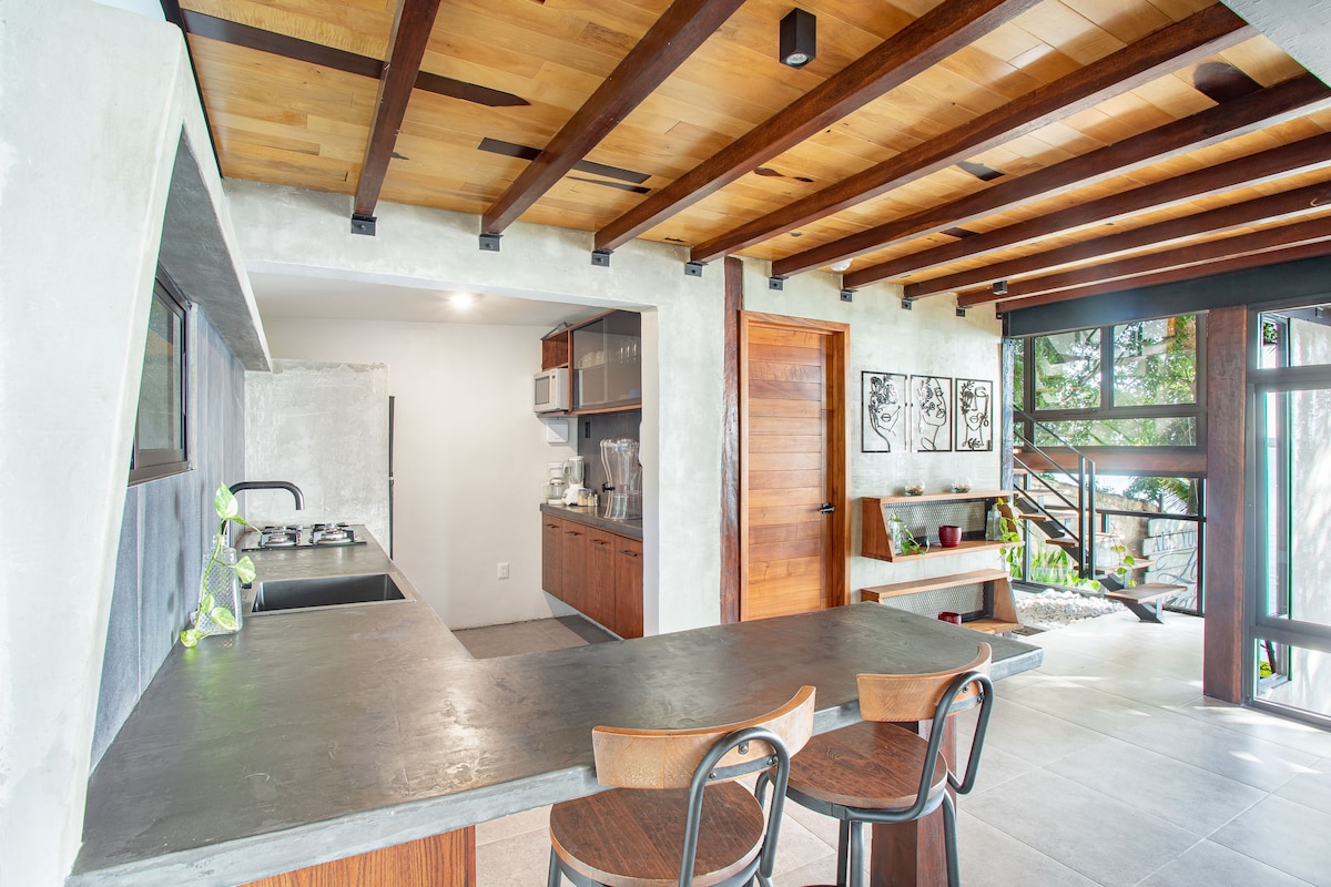 Pobjegnite u mirno utočište u džungli udaljeno samo 4 km od grada Bakalara, sa ekskluzivnim pristupom laguni udaljenom samo 3 minuta hoda. Smešteno u ograđenoj zajednici, ovo svetlo skrovište sa jednom spavaćom sobom nudi veliki bračni krevet, potpuno opremljenu kuhinju, kupatilo i sve pogodnosti. Provodite dane na privatnom pristaništu, upijajući boje lagune Bakalar – zaista posebnog okruženja za isključivanje i punjenje baterija.