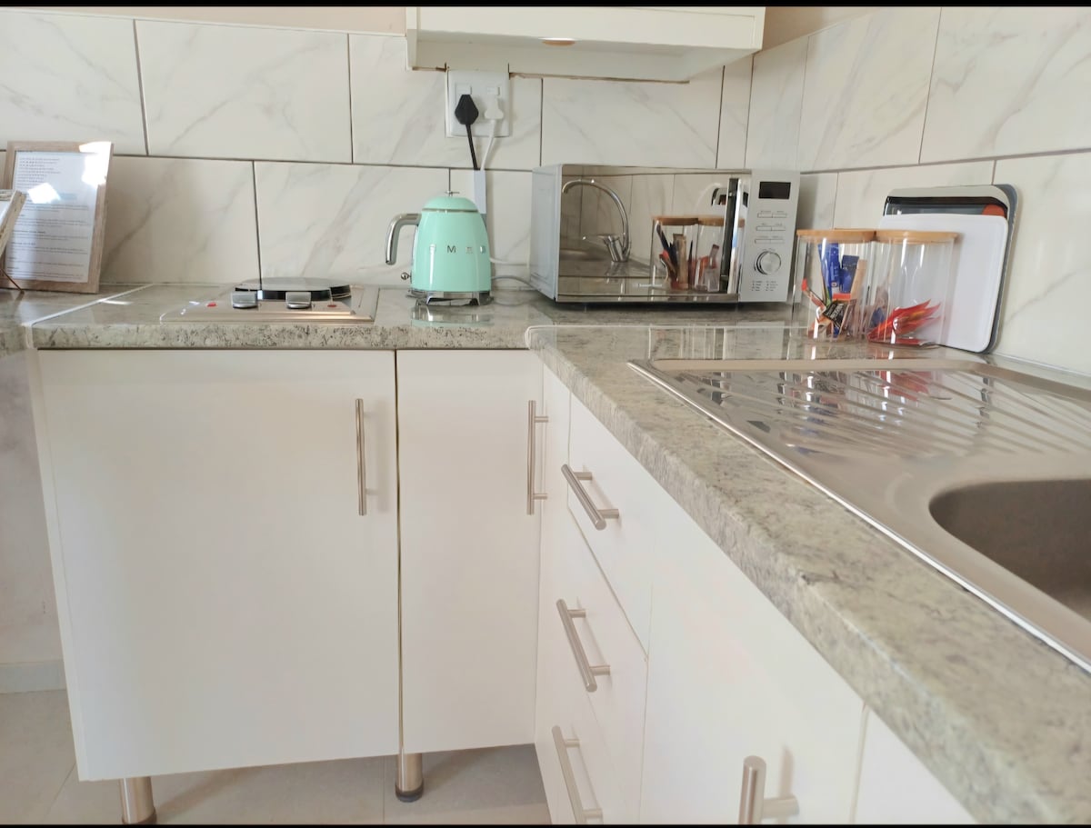 Uživajte u modernom šarmu ovog novoizgrađenog i kompaktnog garsonjere od 32 kvadratna metra. Prostor nudi udoban bračni krevet, dovoljno prostora na kuhinjskom pultu i kupatilo. Smart TV ima DSTV, YouTube Premium i Netflix. Nalazi se u predgrađu Nahoon Moutha, na korak ste od omiljene plaže i popularnih restorana i kafića u istočnom Londonu.