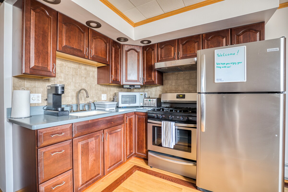 Uživajte u ovom svijetlom i mirnom jednosobnom gornjem stanu koji se nalazi u Vestsajdu u Bafalu. Odlično za duži boravak! Savršeno mjesto za poslovne putnike ili parove. Stan je udaljen 5 minuta vožnje do centra grada i Bafa Gen i 10 minuta hoda do Alena i Elmvuda. The Neighborhood is pocketed with many cafes & shops and is one of Buffalo 's Garden Walk highlights. Uživajte u istorijskoj arhitekturi i ukusnom sendviču od kiselog testa koji pravi Breadhive - nedaleko od vas! LGBTQ+ POC dobrodošli