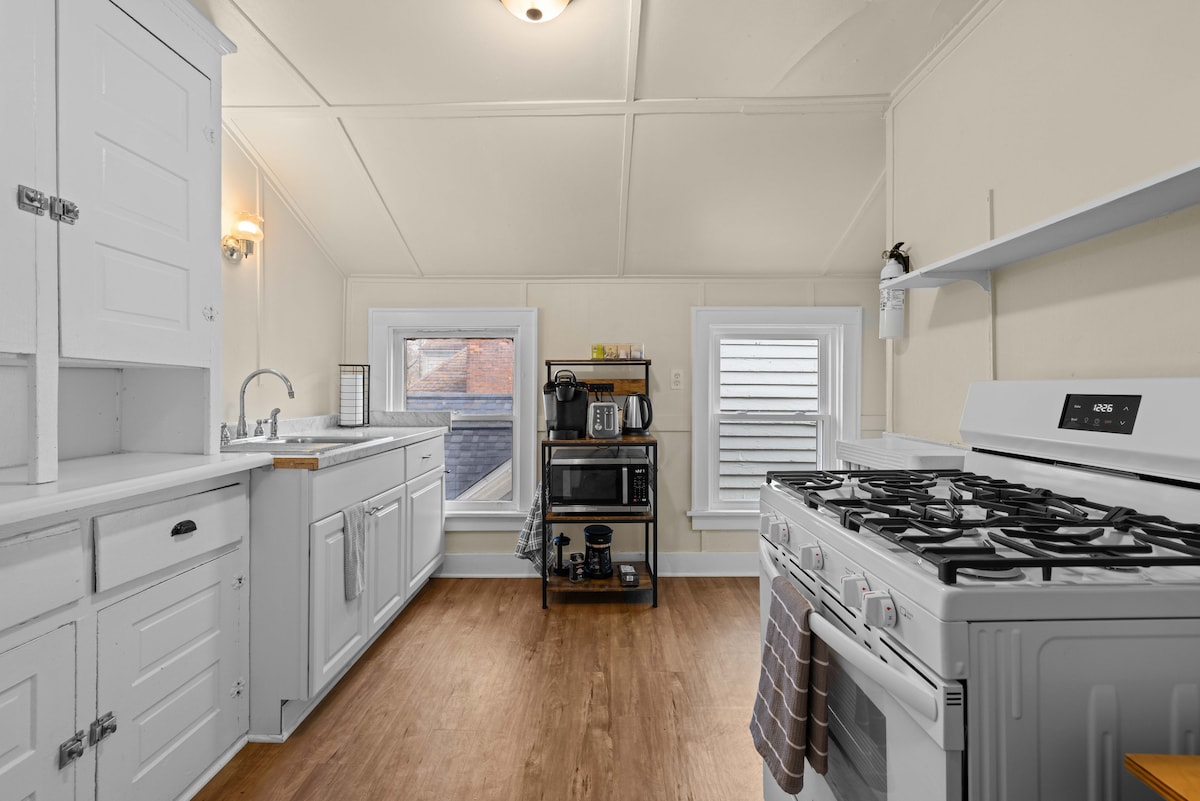 Za one koji vole istorijsku arhitekturu, urbano istraživanje i otkrivanje lokalnih malih preduzeća sa odličnom hranom. Dobro došli u ovaj stan otvorenog koncepta u industrijskom stilu sa 2 spavaće sobe / 1 kupatilom sa WC-om, koji se nalazi u ❤️ grada. Prizemlje, nema stepenica na ulazu, parking van ulice. Udobno uređeno da biste se osećali potpuno prirodno. ⚡️ Wi-Fi 💧 Besplatno pranje veša, mašina za sudove 🐶 Kućni ljubimci su dobrodošli 🚗 5 minuta do Rozvela/centra grada/Buff Gen 🚙 30 minuta Nijagarini vodopadi Nalazi se u Elmvudu / 5 Points / Alentaunu LGBTQ+, POC dobrodošli
