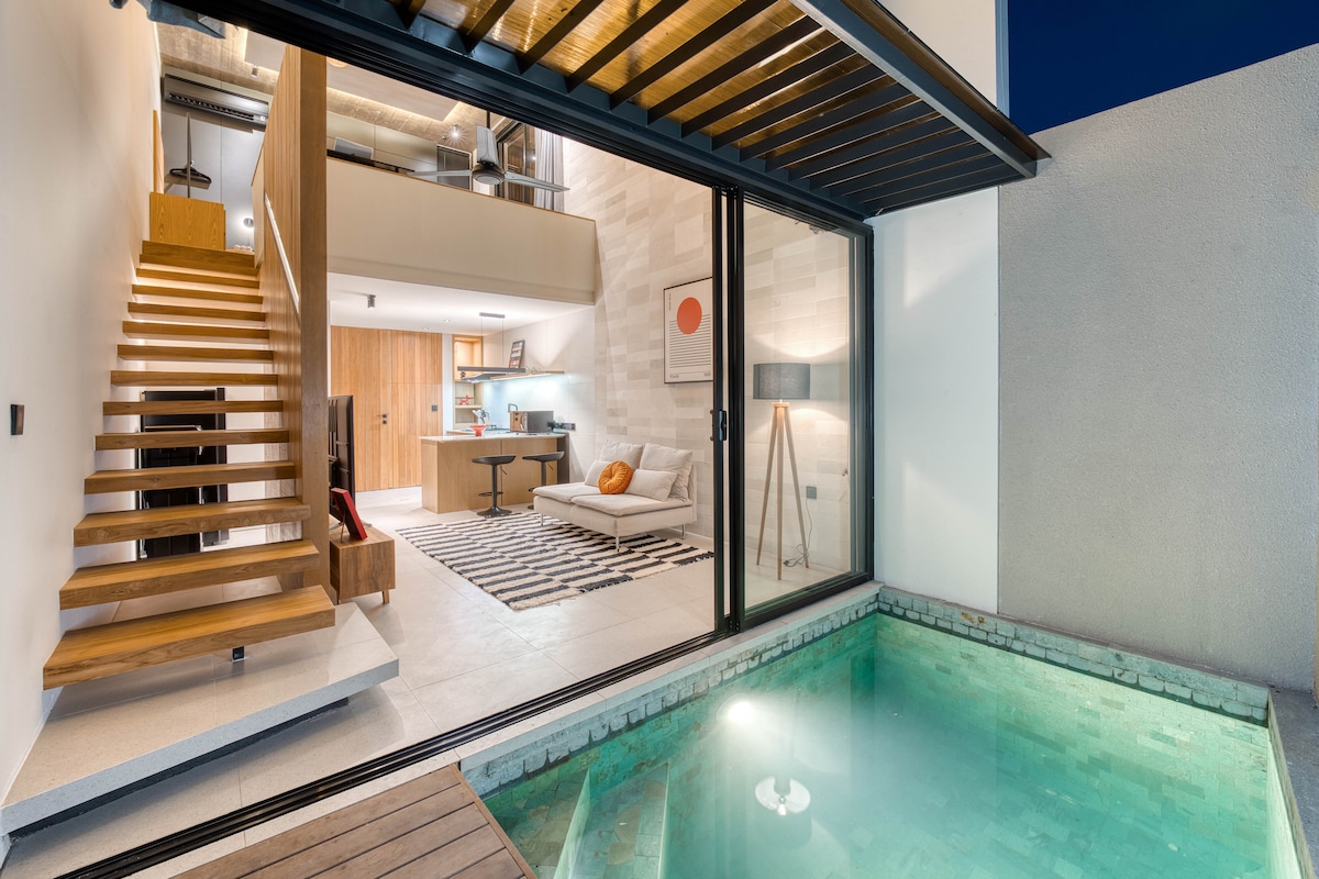 Next to Uluwatus famous Surf Beaches, restaurants & attractions, this villa offers the perfect blend of complete privacy, luxury plus access to everything you need. Step into a Mediterranean dream at our newly built huge fully private 1-bedroom villa, in the heart of Uluwatu. Featuring a private pool, cozy living area with a huge sofa and smart TV, and a fully equipped kitchen, it’s designed for pure relaxation. Enjoy fast Wi-Fi, magical night lighting.
