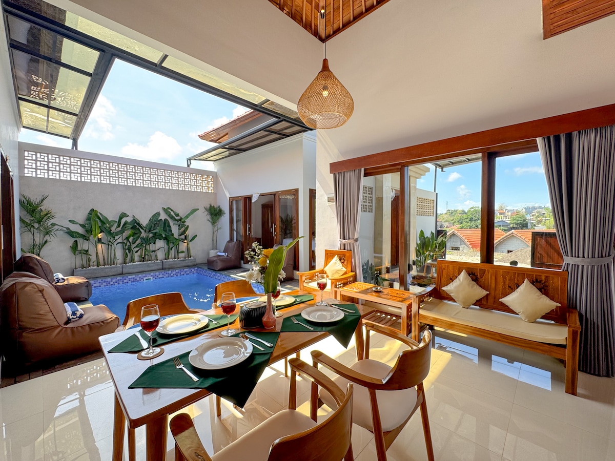 Svijetla, prostrana i potpuno privatna — Kammi Villa je tropsko utočište s 2 spavaće sobe, osvježavajućim bazenom i otvorenim prostorom za boravak. Savršeno za parove, prijatelje ili male porodice koje traže udobnost i mir. Uživajte u hotelskim detaljima kao što su televizori, radni stolovi i kupatila u obje spavaće sobe. Ušuškan u mirnom Ungasanu, u blizini plaža, kafića i aerodroma.