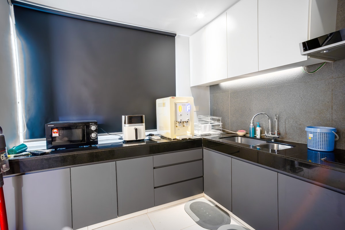 Our place is set right on the waterfront with stunning views from its east-coast location and contemporary features including a living room, ensuite bathroom, big TV+soundbar with free access to Netflix Premium & Youtube Premium for a pure immersive entertainment, free highspeed 500 mbps WiFi, microwave, COWAY waterfilter and a mini-refrigerator. There is also a private parking lot, contactless door locks and security-access elevators for a modern, international-style stay.