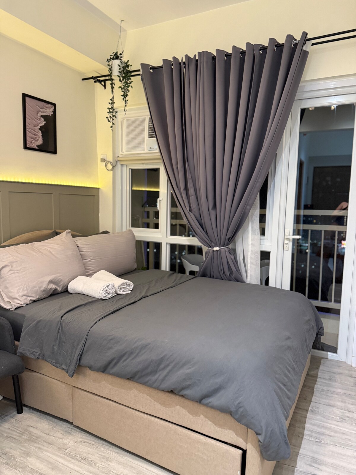 Dobro došli u naš udobni luksuzni studio apartman na 21. spratu tornja Bali u Azure North Pampanga! Ogromna stambena jedinica površine 61 kv. m, dnevni boravak otvorenog tipa sa kliznim vratima od poda do plafona koja se otvaraju na veliki balkon koji obuhvata celu jedinicu, gde možete da se opustite i uživate u pogledu na talasasti bazen, panoramskom pogledu na grad i očaravajućem izlasku i zalasku sunca. Ovo divno utočište savršeno je za parove koji vole velikodušan prostor. Dovoljno prostran za odmor kod kuće sa vašom barkadom/porodicom, za najviše 6 osoba + 1 dete.