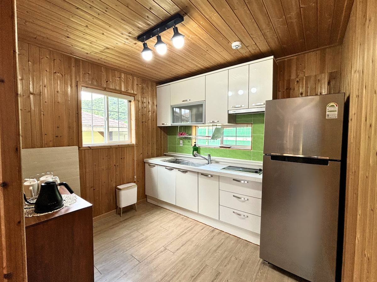 온 가족이 머물기에 적합한 넓은 숙소입니다. 한지붕아래 2개의 객실이 있어요 1. 좌측객실(우잠실:22평) : 온돌방 2개, 거실 1개, 주방 1개, 화장실/샤워장 2. 우측객실(지지실:21평) : 온돌방 1개, 거실 1개, 주방 1개, 화장실/샤워장세탁실 3. 취사 및 식기류 완비, 식탁, 소파, 의자 등 완비 양쪽 객실을 모두 이용할 경우 최대 16명까지 숙박가능함. 3개 방이 있으므로 3개 가족이 독채로 숙박 가능함