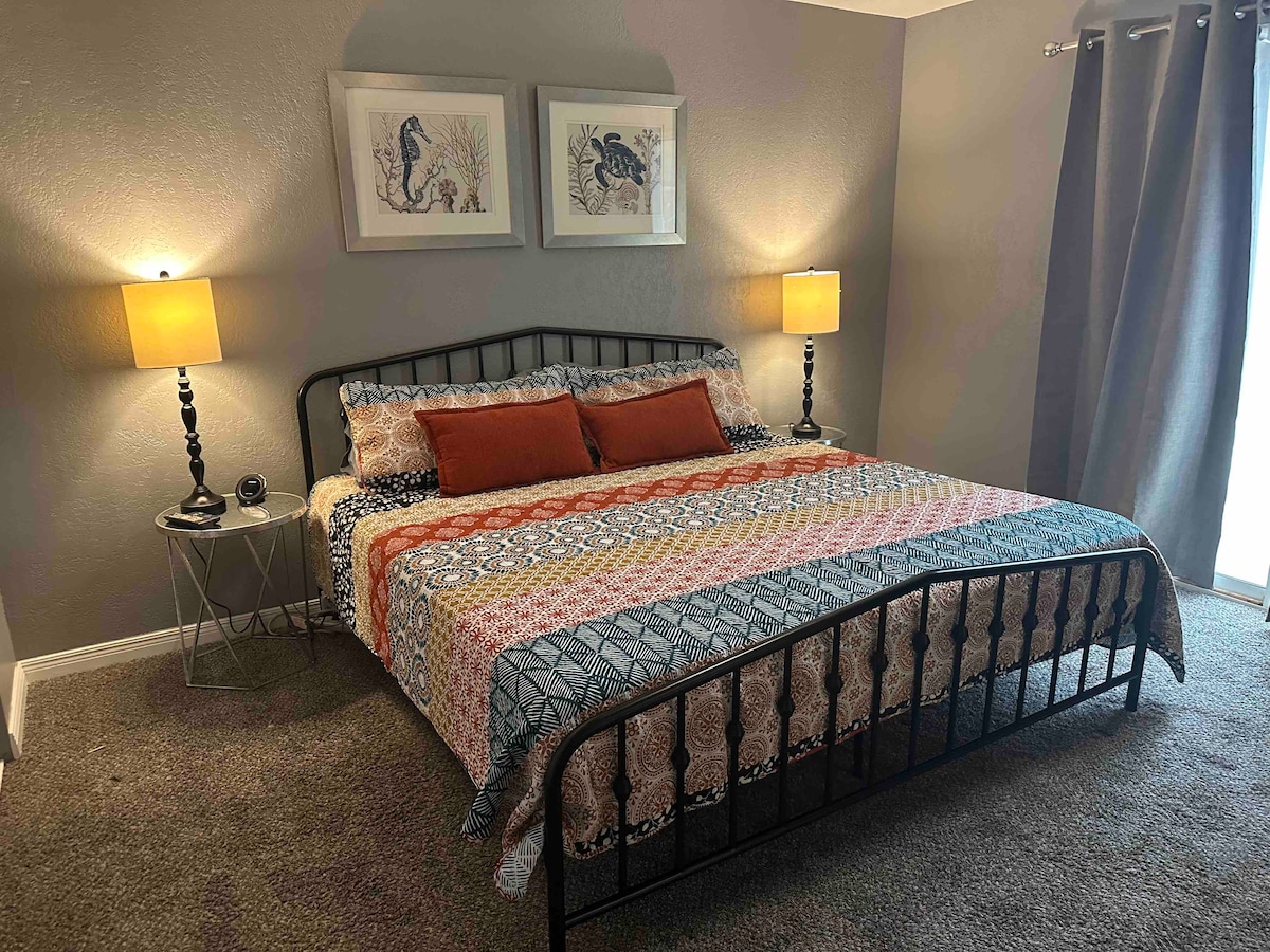 Dobro došli u The Bullhead Boho! Jedinstvena trosobna kuća koja se nalazi u mirnom zelenom pojasu sa jezerima za ribolov na manje od četvrt milje do glavnog autoputa ili našeg privatnog lansiranja i plaže. Smješten u Palo Verde Meadows, naš dom može udobno da primi 8 osoba sa prostorom za druženje u dvorištu ili igranje shuffleboarda ili porodične večere na ogromnom starinskom trpezarijskom stolu. *Trenutno uređeno za praznike*