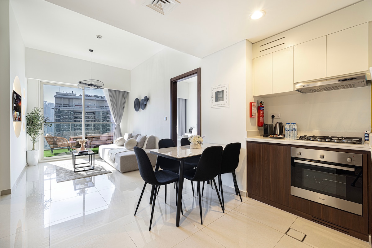 This gorgeous two bedroom apartment is meticulously built to make you feel at home, extravagant and elegant. It is situated in Dubai's most popular and central district, Business Bay. The apartment includes a fully equipped kitchen, a dining area, a modern and pleasant living room with smart tv, two bedrooms with comfortable queen-bed size and a furnished balcony with Burj Khalifa view. This apartment is ideal for people who want to experience modern stays.