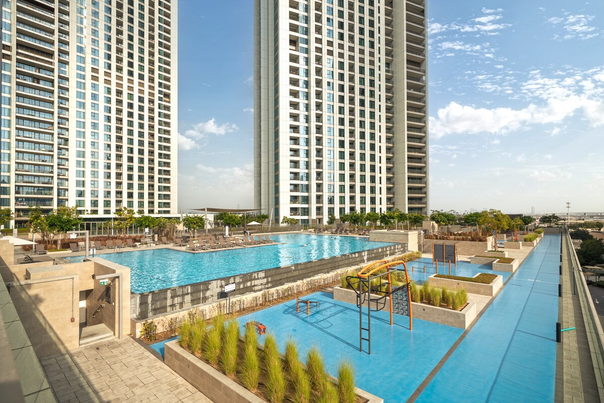 Uživajte u luksuzu u našem 2BR stanu u najljepšem mjestu u Dubaiju , koji se može pohvaliti panoramskim pogledom na Burj khalifa Cityscape i pogled na more. Opustite se i opustite u ovom mirnom i elegantnom smještaju. Iskoristite vrhunske sadržaje zgrade, uključujući preljevni bazen, teretanu, prostor za igru za djecu, bazen za djecu, višenamjensku dvoranu , teren za badminton i teniski teren ☑️10 minuta do tržnog centra Burdž Kalifa i Dubai i SHZ ☑️14 minuta do aerodroma u Dubaiju ☑️10 minuta do Utočišta za divlje životinje ☑️18 minuta do Palm Džumeire