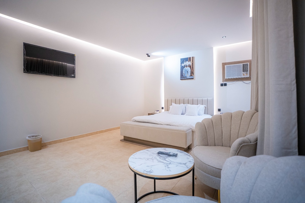 شقة أنيقة وعملية دخول ذاتي استمتع بإقامة هادئة ومريحة ، مناسبة للعائلات والأفراد، وتقع في موقع مميز قريب من الخدمات ، نظافة وتعقيم قبل كل ضيف قريبة من المطاعم، المقاهي، الأسواق والخدمات الأساسية. الديكور عصري، السرير مريح، والتلفزيون 75 بوصة! وفيه ركن قهوة وضيافة يفتح النفس والموقع؟ هادئ وقريب من كل شي ، وكل اللي تحتاجه. والمواقف متوفرة قدام الباب مناسبة جداً لرحلات العمل أو الإقامات القصيرة. احجز واستمتع بتجربة بسيطة ومريحة!