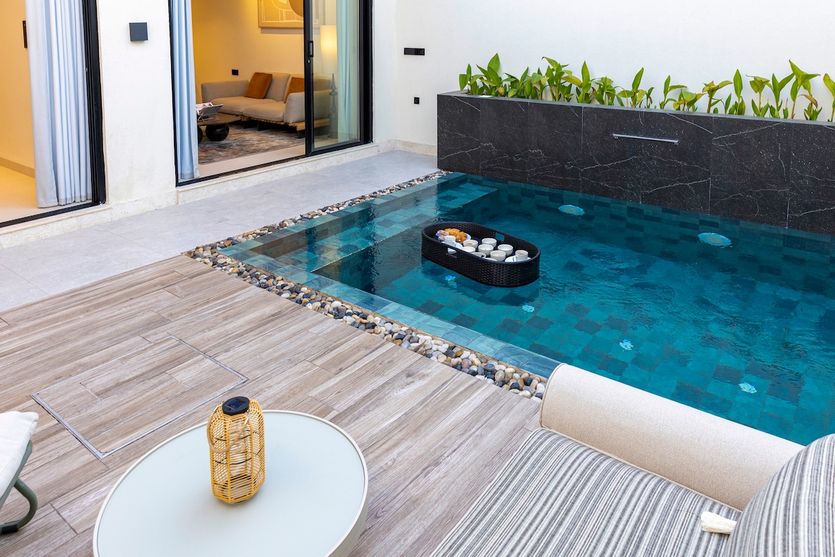 Hotelska planinska kuća dizajnirana da gostima pruži luksuzan boravak koji kombinuje privatnost i udobnost, a uključuje integrisani prostor koji obuhvata elegantnu spavaću sobu, dnevni boravak i dva opremljena kupatila, pored privatnog bazena koji se greje na 37 stepeni, pružajući idealnu atmosferu za opuštanje i provođenje posebnih trenutaka u potpunoj privatnosti