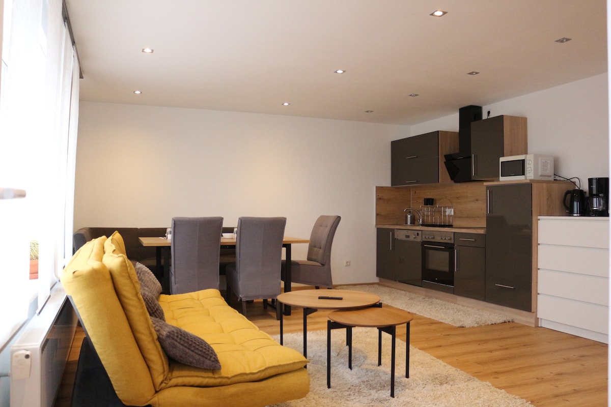 Ovaj novouređeni, moderni stan nalazi se u blizini Legolanda i idealan je za porodice i grupe do šest osoba. Budite jedan od naših prvih gostiju koji će odsjesti u našem novom stanu na Bavarskoj Švabiji. Ima dvije spavaće sobe sa bračnim krevetima (koji se mogu pretvoriti u jednokrevetne), kauč na razvlačenje sa nadmadracem i pametni TV u svakoj sobi. Moderno kupatilo i nova kuhinja jedva čekaju da se koriste! Udobnost, stil i savršena lokacija za vaš odmor!