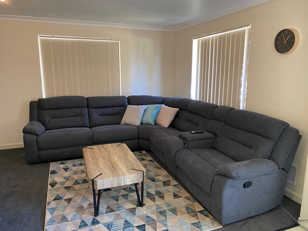 Uživajte u kratkoročnom ili dugoročnom boravku u moderno opremljenoj kući od cigle sa 4 spavaće sobe. 2 tuša, 1 sa kupatilom i 2 toaleta. Novi kreveti i namještaj za 9 osoba. Evap aircon i pojedinačno električno grijanje prostorija. Kratka šetnja do lokalne taverne, teretane, golf kluba, rekreacionog centra i restorana. 10 minuta hoda do centra grada. Merredin stena/železnička brana je blizu. Mirno područje grada za miran boravak. Dupli prilaz, dosta parking mesta. Raspitajte se o REZERVACIJAMA za 1 NOĆENJE jer ćemo možda moći da vam ponudimo smještaj.
