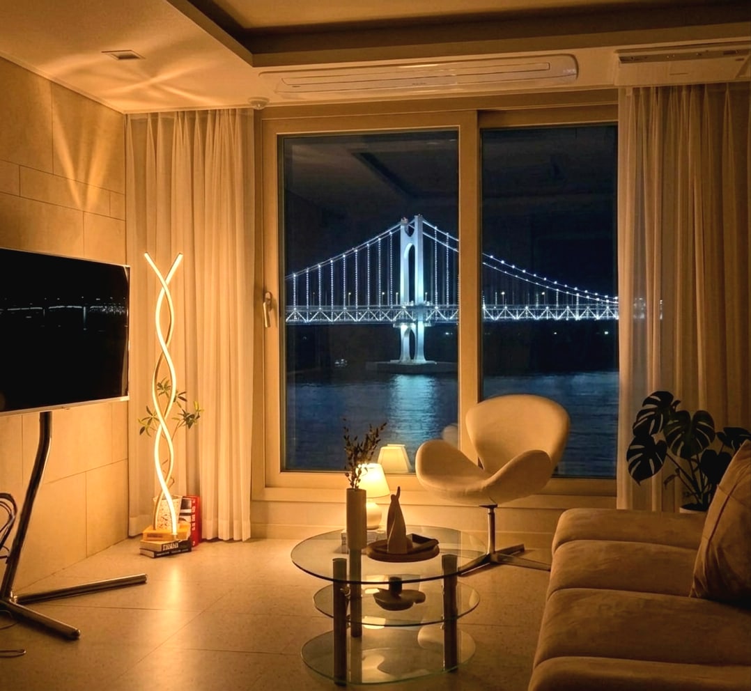 ✨ Dodajte dašak emocija u Gwangalli – Dobro došli u GwangAn ♥ Odsjednite u udobnom i elegantnom smještaju koji se nalazi neposredno ispred plaže Gvangali. Probudite se uz pogled na okean i zaronite u jedinstvenu atmosferu omiljene priobalne četvrti Busana. Airbnb sa dozvolom za obavljanje djelatnosti u Koreji 📍 Glavna lokacija • Samo nekoliko koraka od plaže Gvangali • Okruženi modernim kafićima i lokalnim restoranima • 5 minuta hoda do pijace Milak • 10 minuta hoda do parka Minrak Votersajd