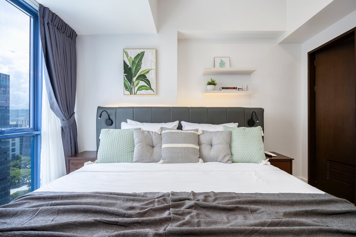 Uživajte u luksuzu u našem apartmanu 1BR. Opustite se u prostranom prostoru s plišanim bračnim krevetom, dobro opremljenom kuhinjom i kupatilom s kadom za podmlađivanje. Uživajte u panoramskom pogledu iz vašeg privatnog utočišta. Povećajte produktivnost uz namjenski radni prostor s brzim WIFI-JEM. Uživajte u ekskluzivnom pristupu sadržajima zgrade - teretani, bazenu, poslovnom centru i dovoljnom parkingu. Naš dragulj koji se nalazi u centru grada nudi praktičnost i udobnost, što vam omogućava da bez napora istražite grad.