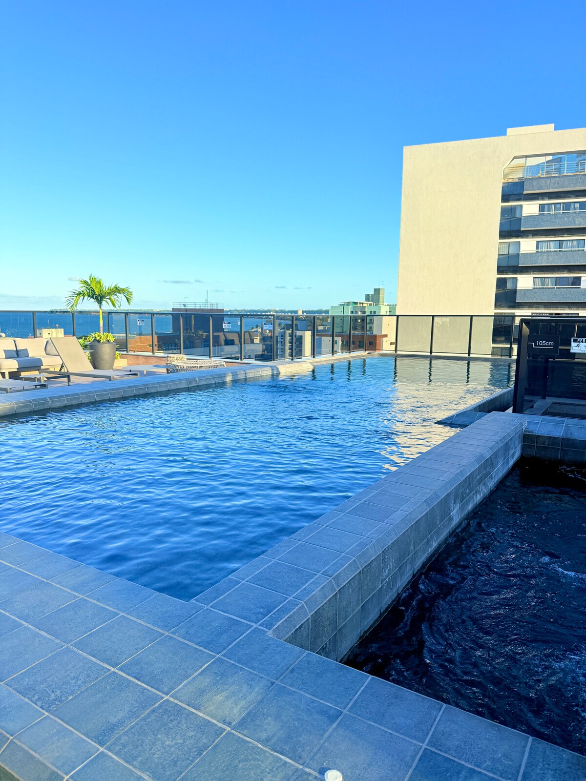 Uživajte u elegantnom doživljaju na vrhunskoj lokaciji. Ispred plaže Besa. Ovo je jedan od rijetkih objekata u regionu sa bazenom. Udobnost i osvjetljenje sa vrhunskim uređajima, tipični za hotel sa 5 zvjezdica. Obezbjeđenje 24 sata dnevno. Klima-uređaj i pametni televizori sa besplatnim Netflix-om i GloboPlay-om u dnevnoj sobi i svim spavaćim sobama. Stalni parking. Bazen na krovu i roštilj. Digitalna mašina za pranje veša u stanu i objekti za pranje veša u kondominijumu.