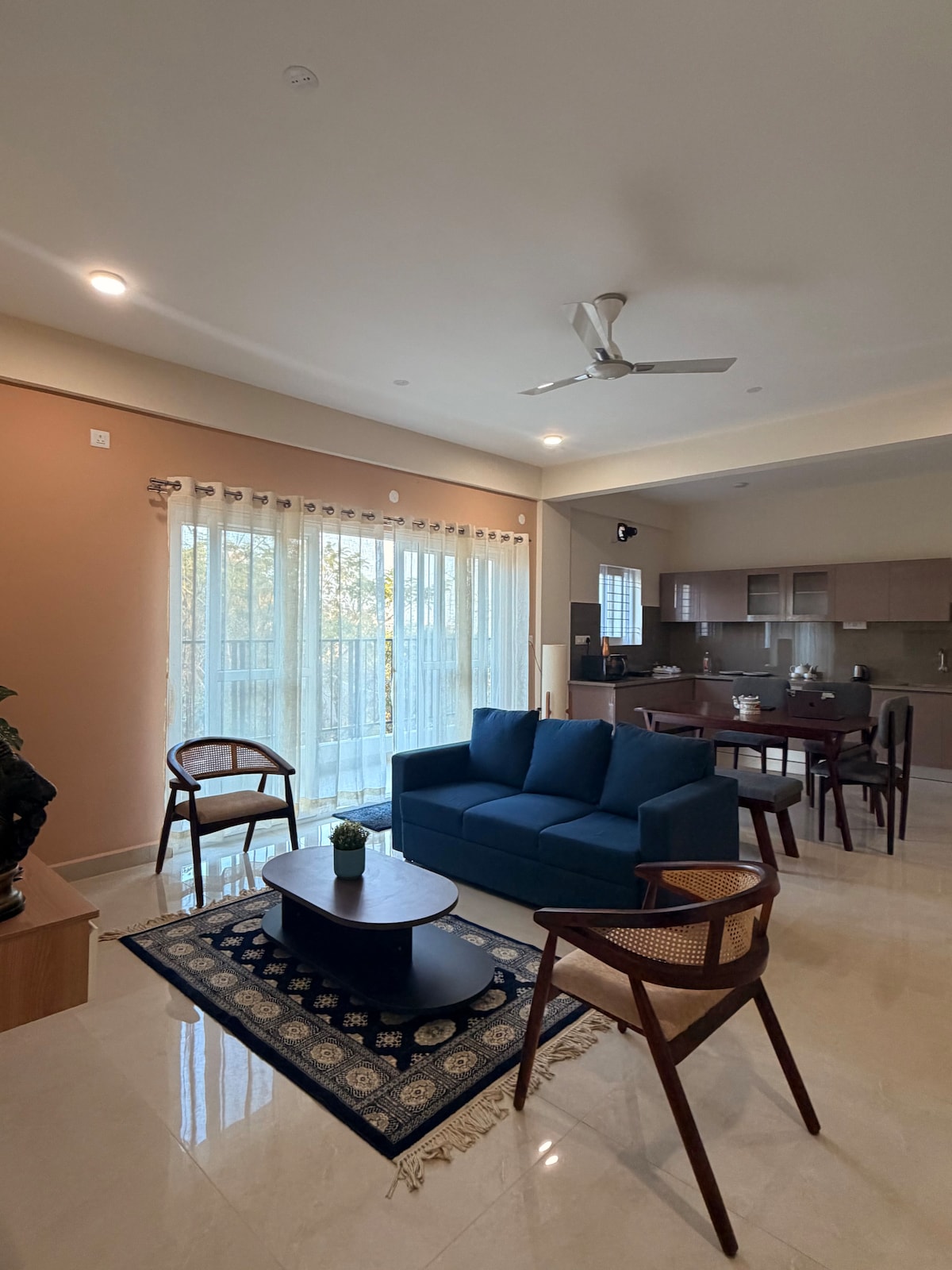 Dobro došli u naš potpuno novi, prostrani 2-BHK stan, idealan za porodice i parove koji traže udobnost i praktičnost. Spavaće sobe imaju bračne krevete s mekim ortopedskim dušecima za miran san. Opustite se u velikom dnevnom boravku sa pametnim TV-om od 43 inča, munjevito brzim Wi-Fi mrežom i namjenskom trpezarijom. Uključuje dva izuzetno čista kupatila opremljena osnovnom opremom za kupanje. Potpuno opremljena kuhinja uključuje visokokvalitetne uređaje i posuđe za vaše kulinarske avanture.