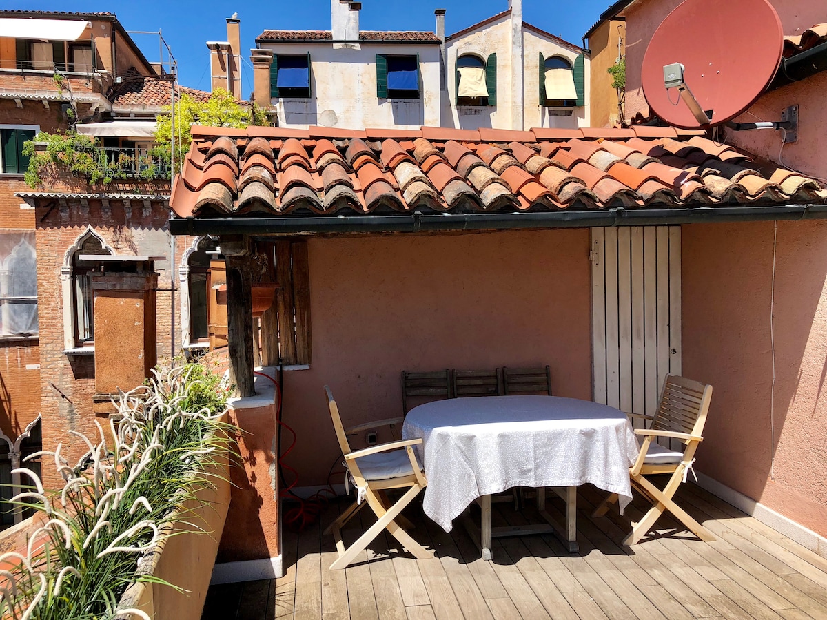 Luksuzan apartman sa privatnom terasom i prelepim pogledom, na samo nekoliko koraka od crkve Kjeza dela Salute. Nedelju dana pre dolaska, tražiće se identifikacioni dokument samo jednog gosta, zajedno sa plaćanjem naknade za čišćenje (50 EUR za celu grupu i boravak) i boravišne takse. Vaši podaci će se deliti samo sa policijom i opštinom Venecija Liftovi su retki u Veneciji: ima oko 50 stepenika, ali nisu previše strmi. Dostupan je prostor za odlaganje prtljaga.