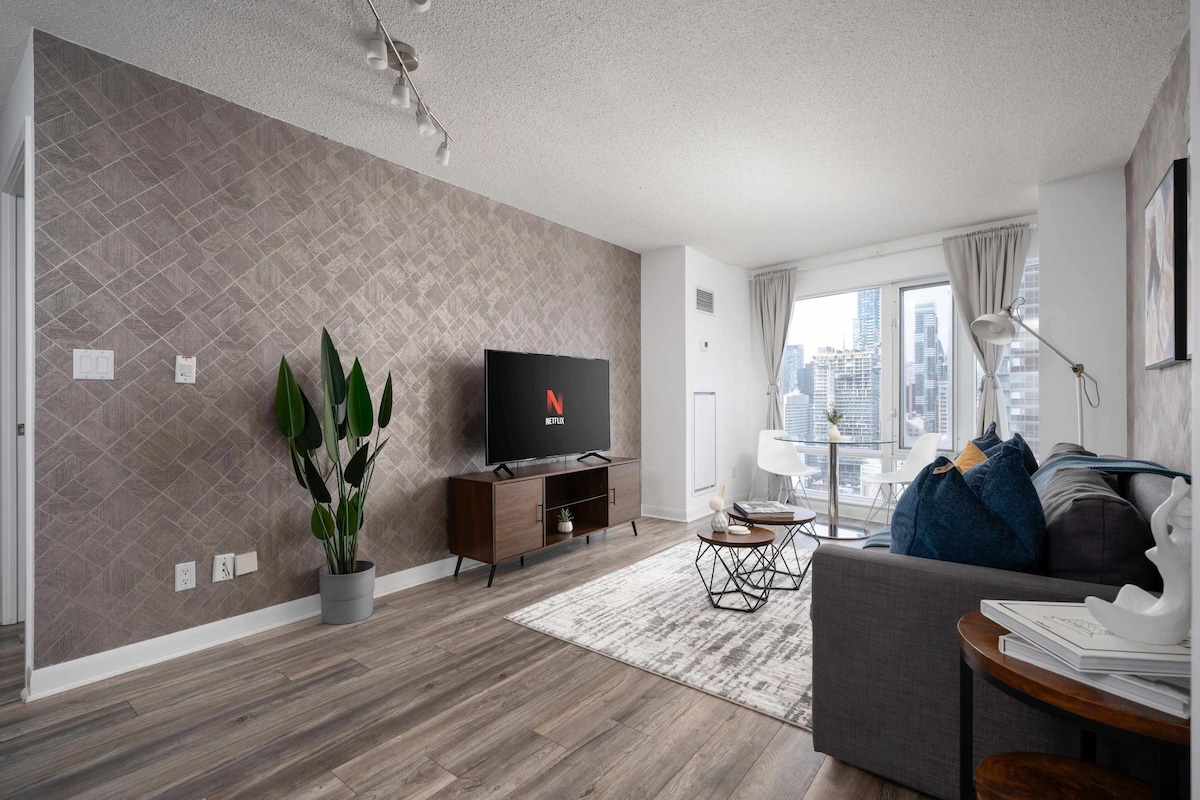 Luksuzan jednosobni stan u centru grada, na nekoliko koraka od arene „Scotiabank“, „Rogers Centra“ i kvarta „Harbourfront“. Idealno za poslovna putovanja, parove i kratke odmore u Torontu. Ovaj moderni stan na obali, smešten u zabavnoj i finansijskoj četvrti Toronta, nudi vam blizinu najpopularnijih atrakcija, saobraćajnih veza, restorana i noćnog života. Uživajte u sadržajima zgrade sa 5 zvezdica, besprekornom, lepo uređenom prostoru i udobnom boravku u stilu hotela. Savršeno za poslovne putnike, parove i turiste koji traže smeštaj u centru Toronta.
