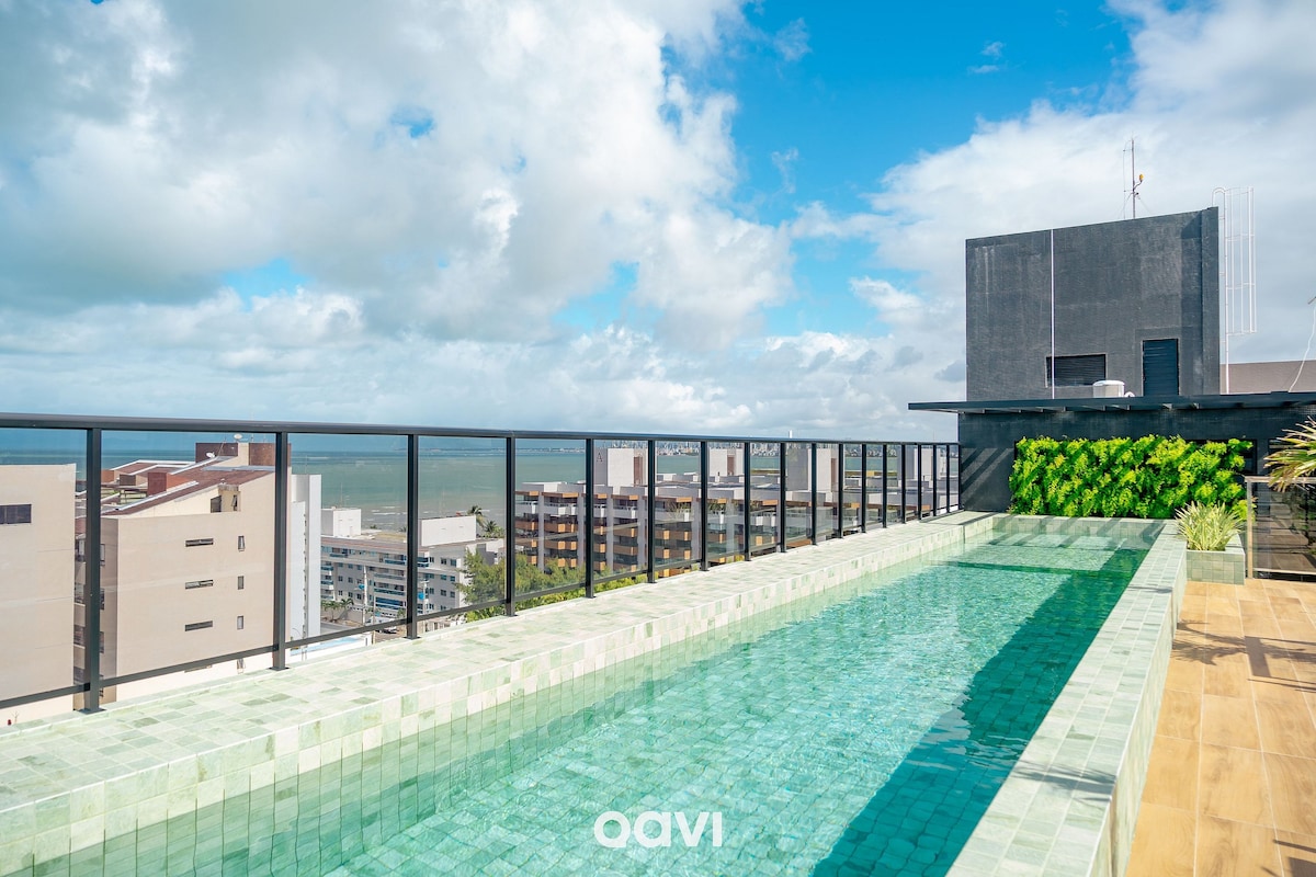 150 metara od plaže Bessa! Prostran i moderan stan sa 2 klimatizovane spavaće sobe (1 apartman sa bračnim krevetom), balkonom sa pogledom na more, dnevnim boravkom sa sofom i Smart TV-om, 2 kupatila, kompletnom kuhinjom, izuzetno brzim Wi-Fi mrežom i natkrivenim parking mjestom. Bazen na krovu i pribor za plažu za uživanje u danima u Žoao Pesoi. Neka vas Žoao Pesoa zagrli izlaskom sunca i zvukom mora. Rezervišemo sada i doživljavamo ovaj jedinstveni doživljaj!