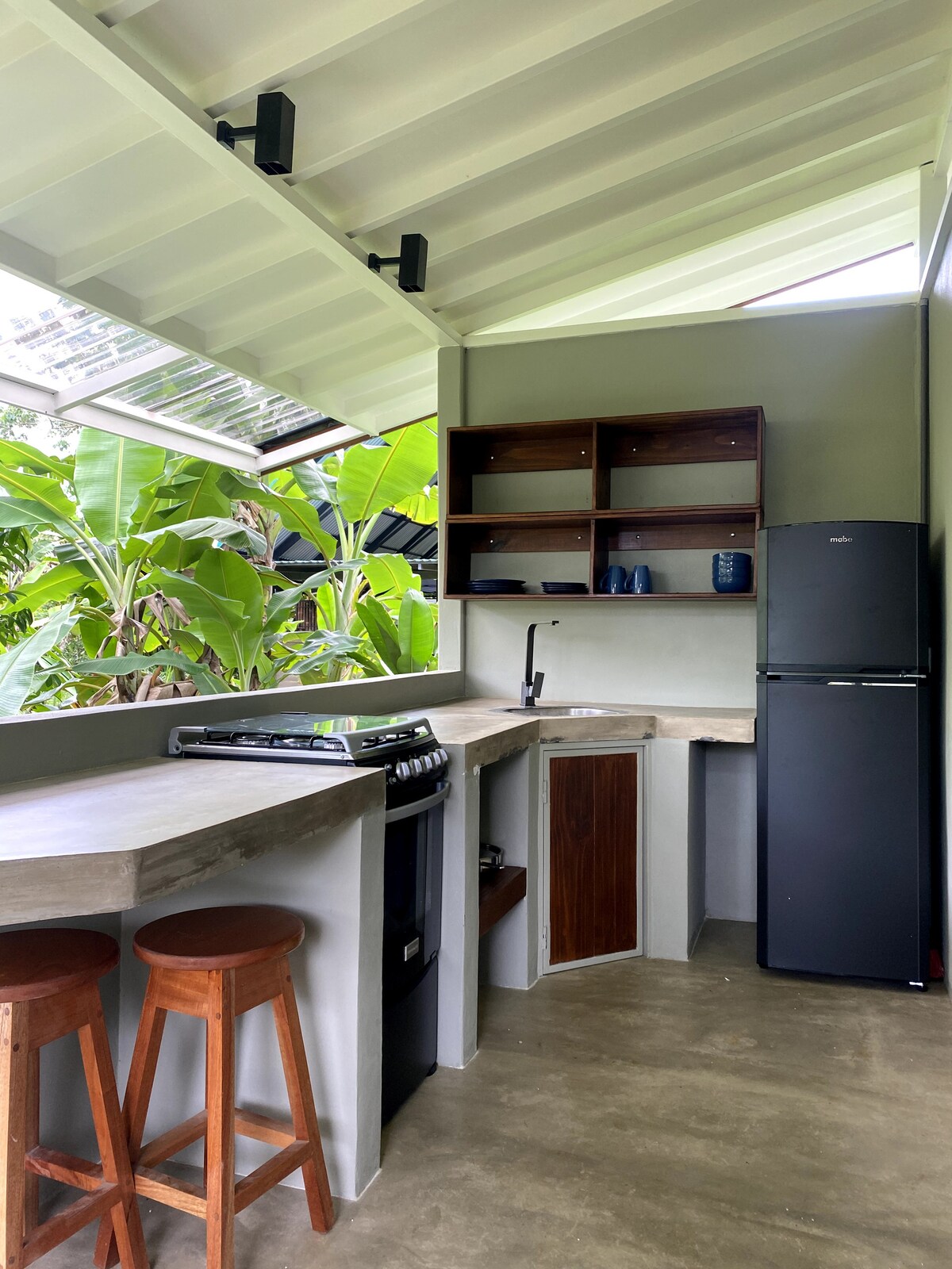 Spectacular open-air bungalow / treehouse - wildlife, surfer & yoga paradise! Wake up to the call of the birds, howler monkeys and waves crashing. Enjoy the day and night with sounds, scents and sights of the jungle & ocean. Fall in love with the amazing view! You can look forward to a unique outdoor living experience with wildlife encounters, private yoga with a 360° ocean & jungle view, and great surf, only 3min walk to the beach of Punta Banco and 15min by car to Pavones.