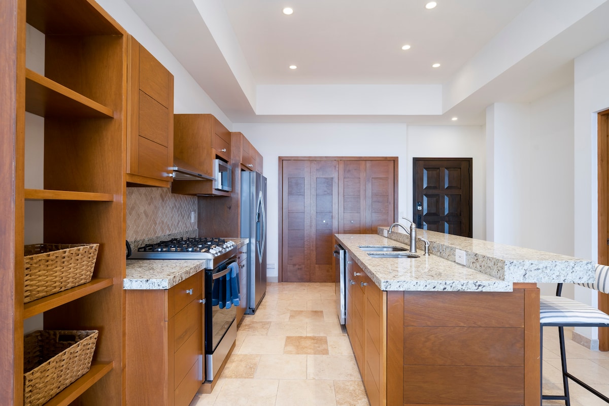 Welcome to your spacious Cabo getaway — a modern 3BR condo with mountain & city views, perfect for families and groups up to 9. Enjoy indoor-outdoor living with a large private balconies, open concept living/dining, and pool access. Just 1.5 miles to the Marina, restaurants & nightlife — peacefully tucked away for relaxation. ✅ Fully Equipped Kitchen ✅75 inch smart TV - w/ Netflix 4K+HDR ✅200 Meg Internet ✅24hr Security ✅Private Assigned Parking ✅Filtered Water Dispenser ✅Coffee ☕️ and Tea
