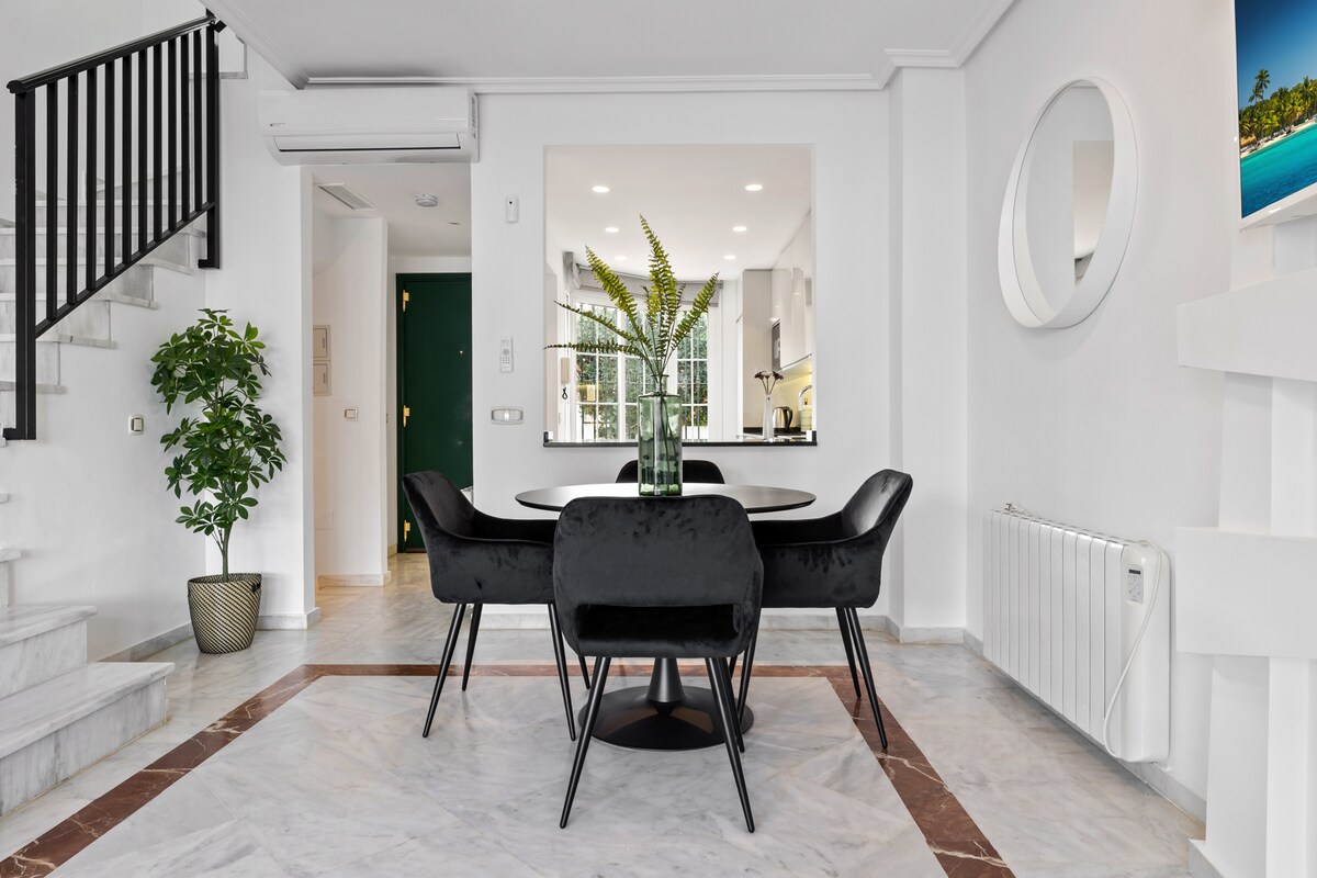 Welcome to our stunning vacation home in the enchanting Spanish village of Cabopino, Marbella. Enjoy a luxurious stay with 4 bedrooms, a stylish living room, new kitchen, and 3 bathrooms. Unwind in the front garden, backyard, or spacious rooftop terrace. There's even an office with four deluxe workstations in the basement. Within walking distance of the golf course, harbor, and beach of Cabopino. Book now and turn your dream vacation into a reality!