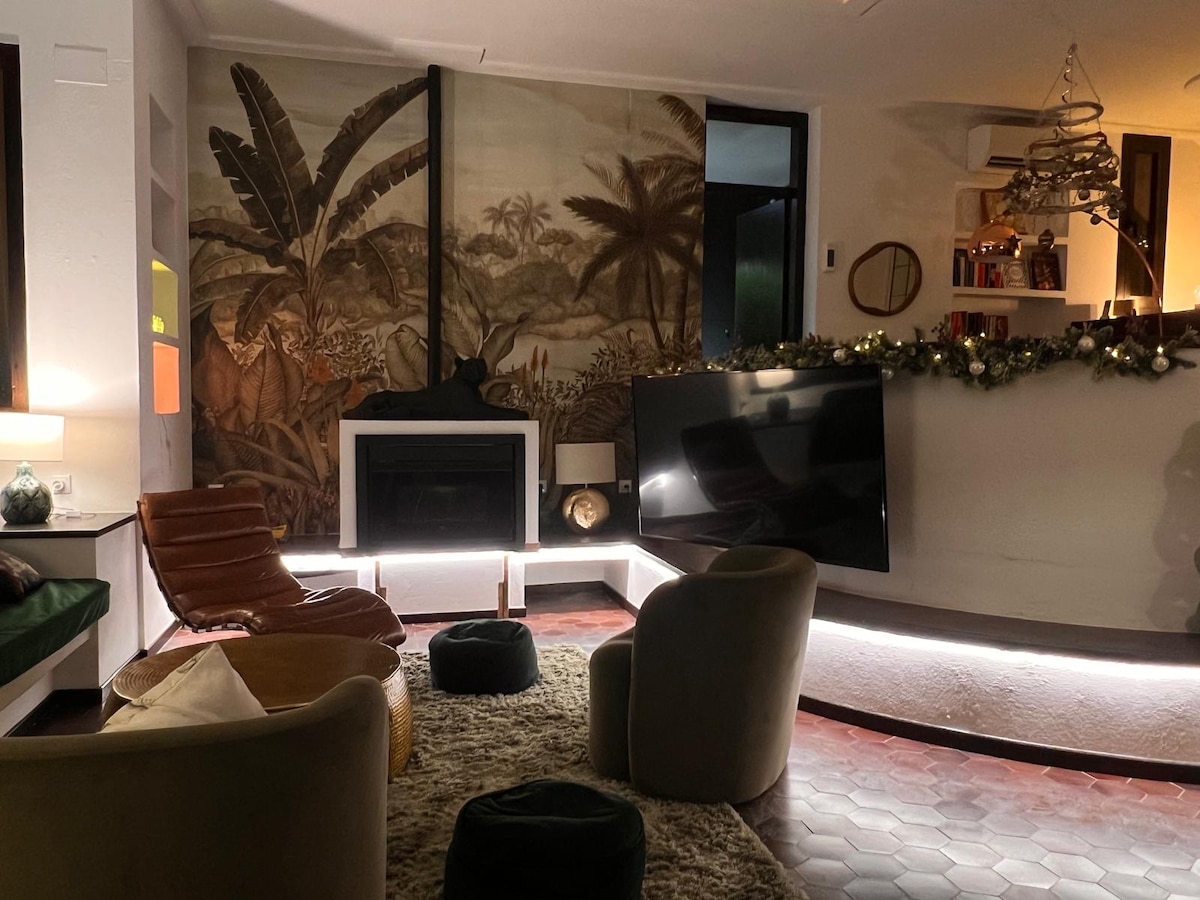 Ekskluzivni novi stan u Cabrils sa pogledom na okean,je kuća sa 2 nezavisna sprata,onaj za iznajmljivanje je raspoređen sa velikim dnevnim boravkom sa kaminom, 2 dvokrevetne sobe sa bračnim krevetom i jednokrevetna soba sa krevetima na sprat. Puna kuhinja i veliko kupatilo sa saunom, tušem i đakuzijem. Potpuna privatnost. Spoljašnjost: uređen prostor, bazen i ugrađeni roštilj, terasa. Fiber i Netflix. 30 minuta vožnje od Barselone i 5 minuta od stanice Renfe koja komunicira sa Pl. Catalunya.