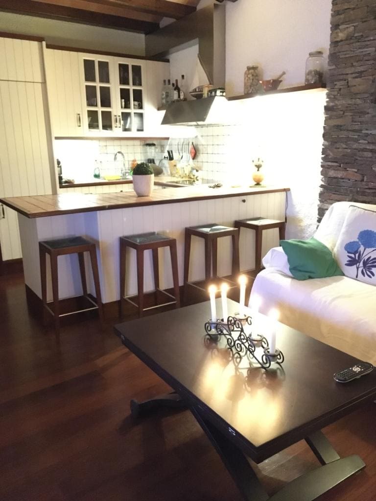 75m2 loft apartment with modern and unique architecture. Carefully designed, decorated with vintage-style furniture and art carefully selected over the years. This combination, along with a spectacular and impressive view over the bay of Cadaqués, makes it absolutely unique. It is located just 1 minute walk from Es Poal beach, about 45m away. PET friendly. We love animals. Please inquire privately about the extra cost per night for your adorable and furry friend.