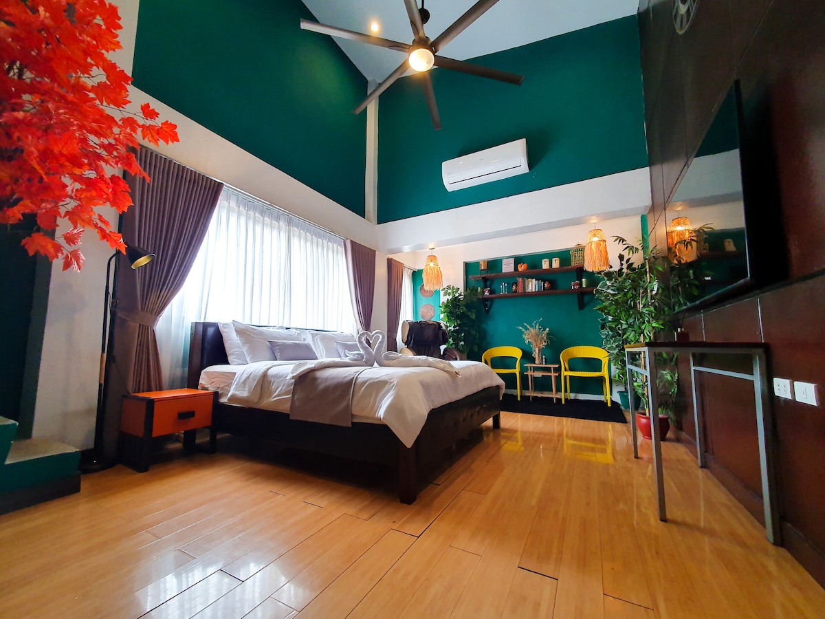 -Bathtub -Queen Bed w/ Fresh Linen & Towels -Balcony -Free Parking -Wifi -4K TV (w/ Netflix, Disney, Amazon) -Fully AC -Shampoo, Soap, & Toilet Paper -Dedicated Workspace -Zen Room Access -Microwave/Rice Cooker/Electric Kettle/Refrigerator -Espresso Machine & Fresh Coffee Grounds -Purified Drinking Water -Outdoor Grill Experience the perfect couple’s getaway in this cozy suite featuring a private balcony with mountain views. Relax together while soaking in the fresh air and stunning scenery.