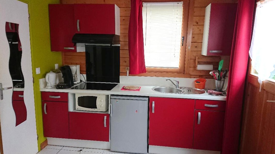 Prilično nezavisna planinska kuća od 25 m2 u našem objektu sa svom modernom opremom, 7 km od mora! Bračni krevet na mezaninu i klik-klak u salonu za 2 dodatna gosta. Kupatilo sa tušem, WC-om i mašinom za pranje veša. Električno grijanje. Smart TV Namještena kuhinja. Privatna terasa. Privatni parking samo za 1 automobil. Mogućnost pozajmljivanja sklopivog kreveta za decu do 2 godine.