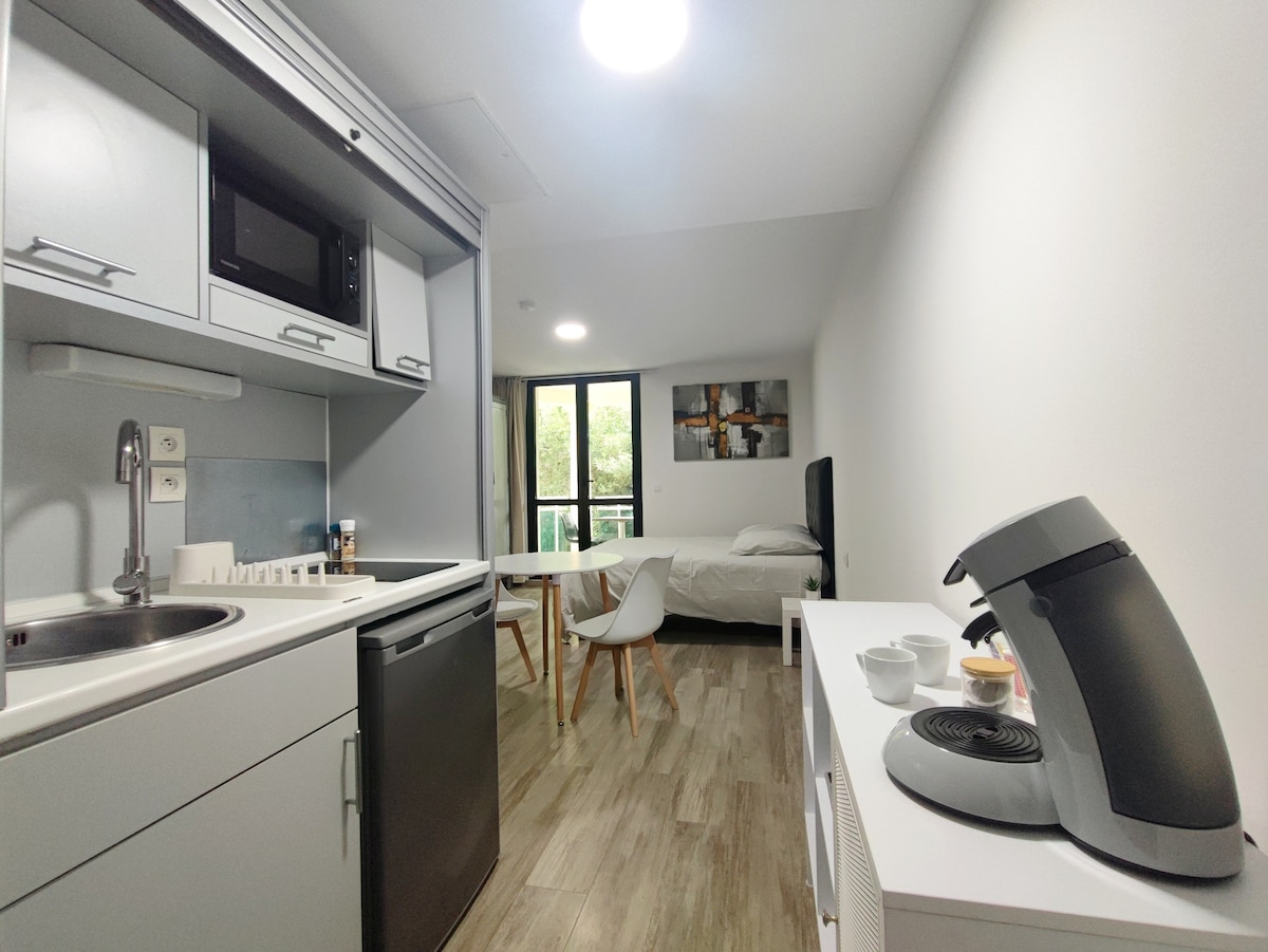 *Prilično klimatizovan studio sa balkonom 300m od luke